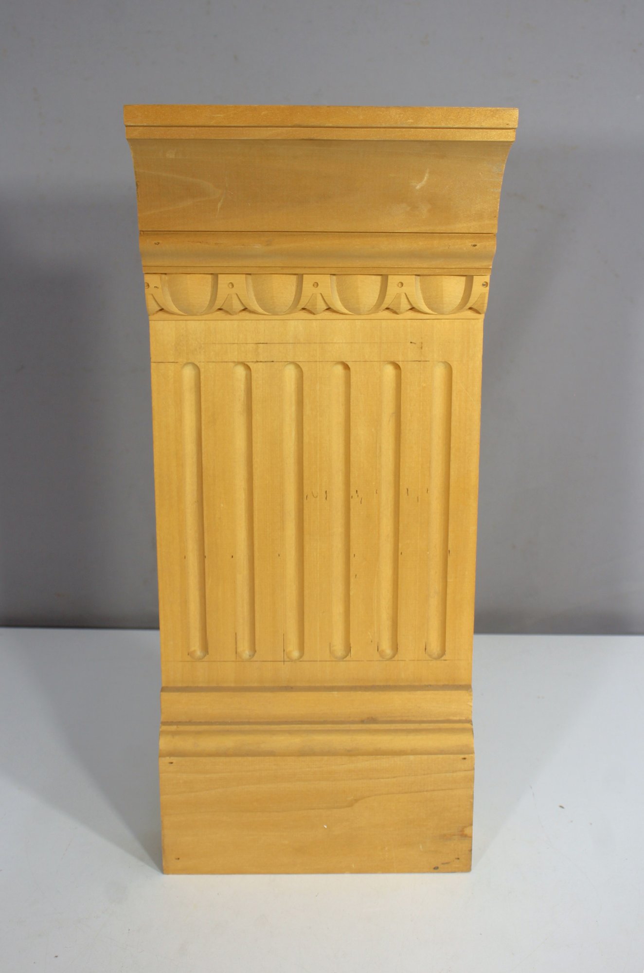This beautifully crafted architectural wood column sample features classic fluting, decorative egg-and-dart molding, and an elegant crown detail—perfect for use in interior design, furniture making, or as a decorative architectural accent.