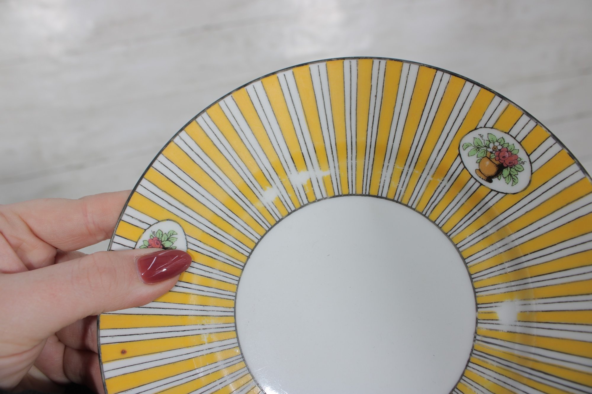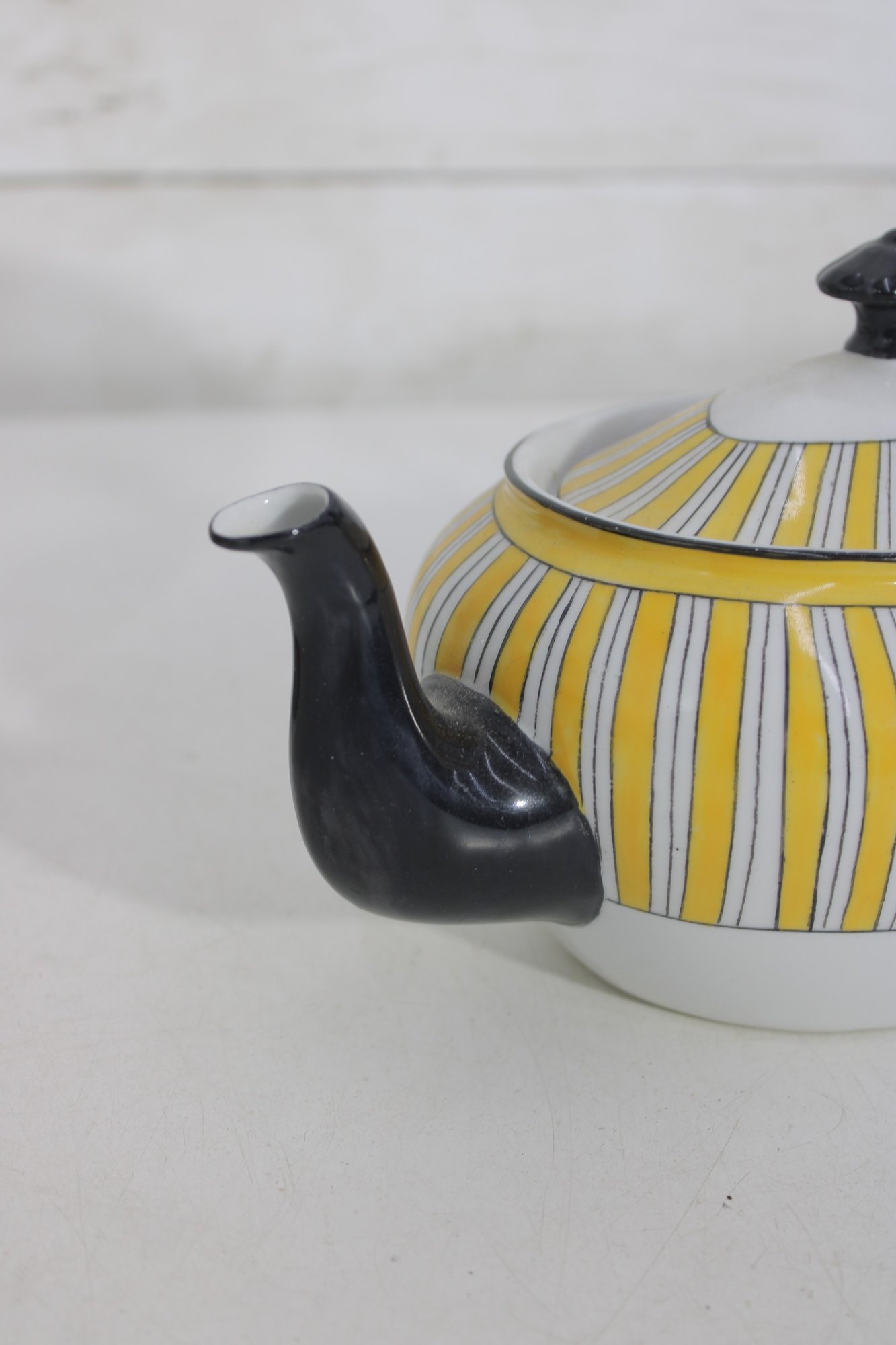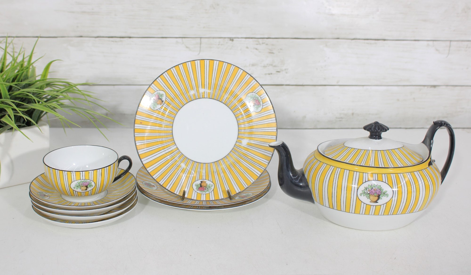 The bold stripe pattern paired with fine porcelain craftsmanship makes this a beautiful display set for collectors of European china, Art Deco décor, or vintage tea service pieces. Perfect for afternoon tea presentations, display cabinets, or adding a bright vintage touch to any table setting.