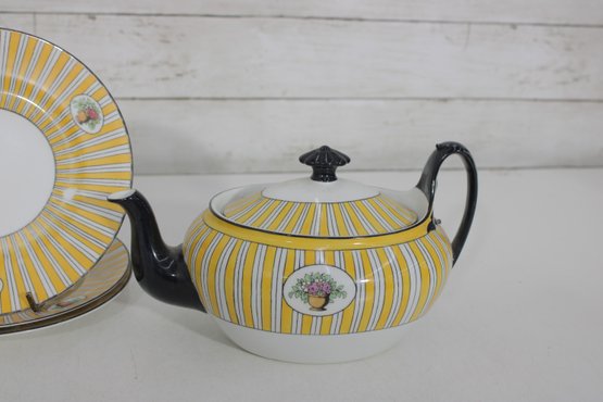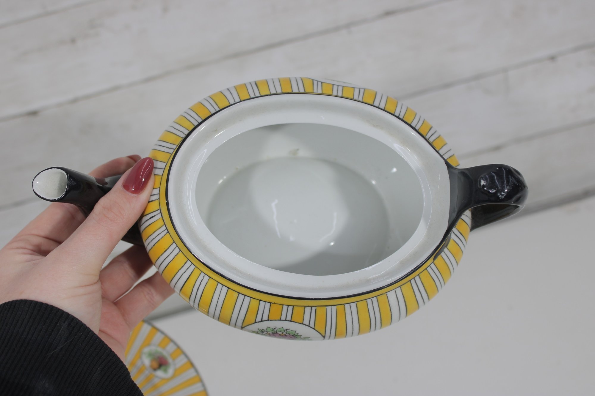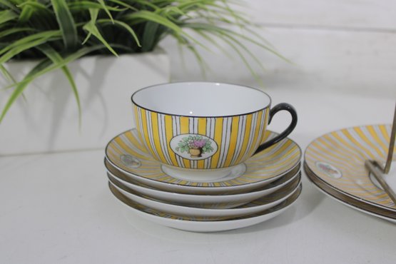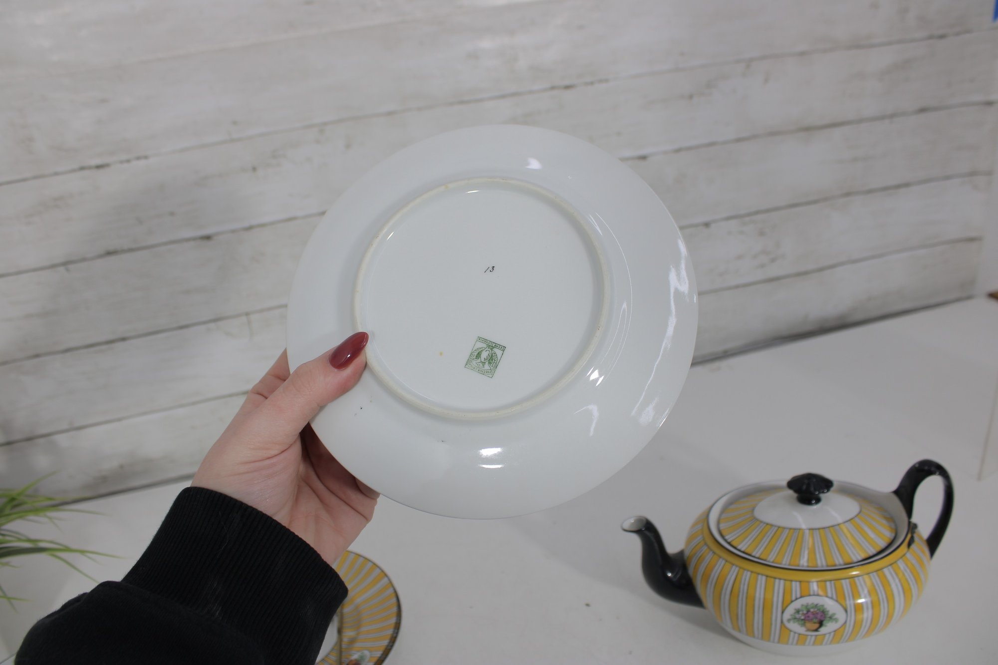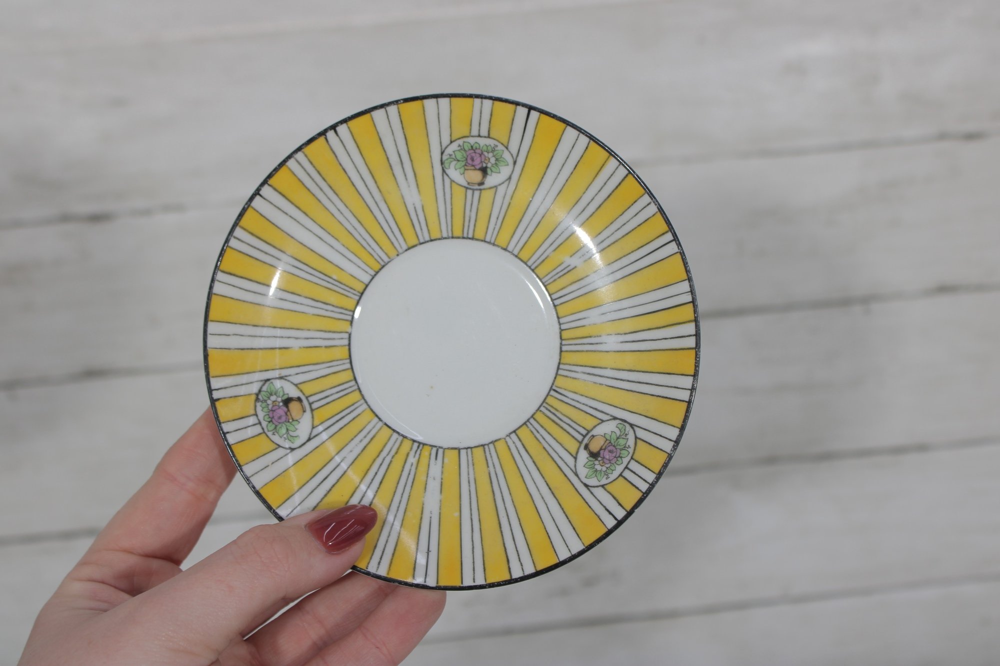 The bold stripe pattern paired with fine porcelain craftsmanship makes this a beautiful display set for collectors of European china, Art Deco décor, or vintage tea service pieces. Perfect for afternoon tea presentations, display cabinets, or adding a bright vintage touch to any table setting.
