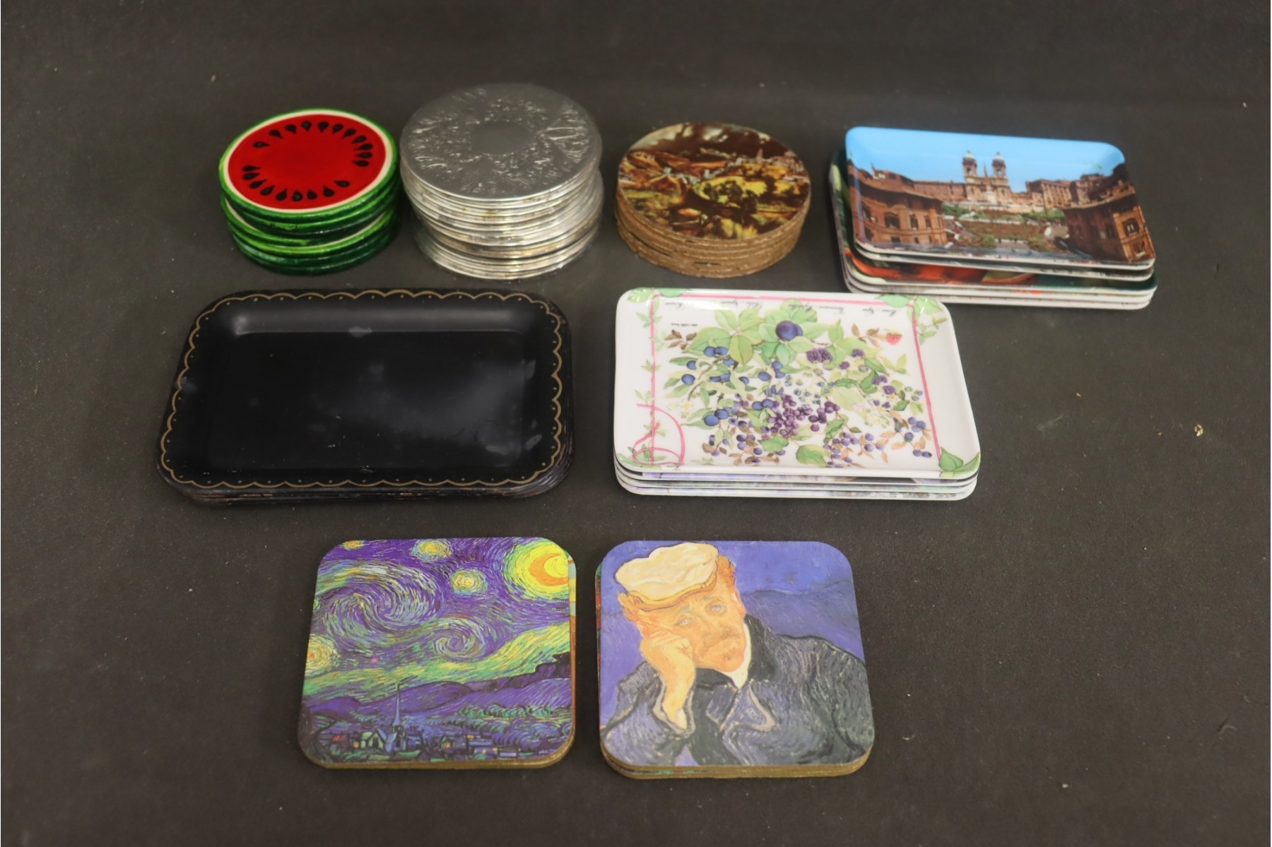 Artful & Fun Group Of Coasters And Small Trays - Tole, Van Gogh, Watermelons, And More