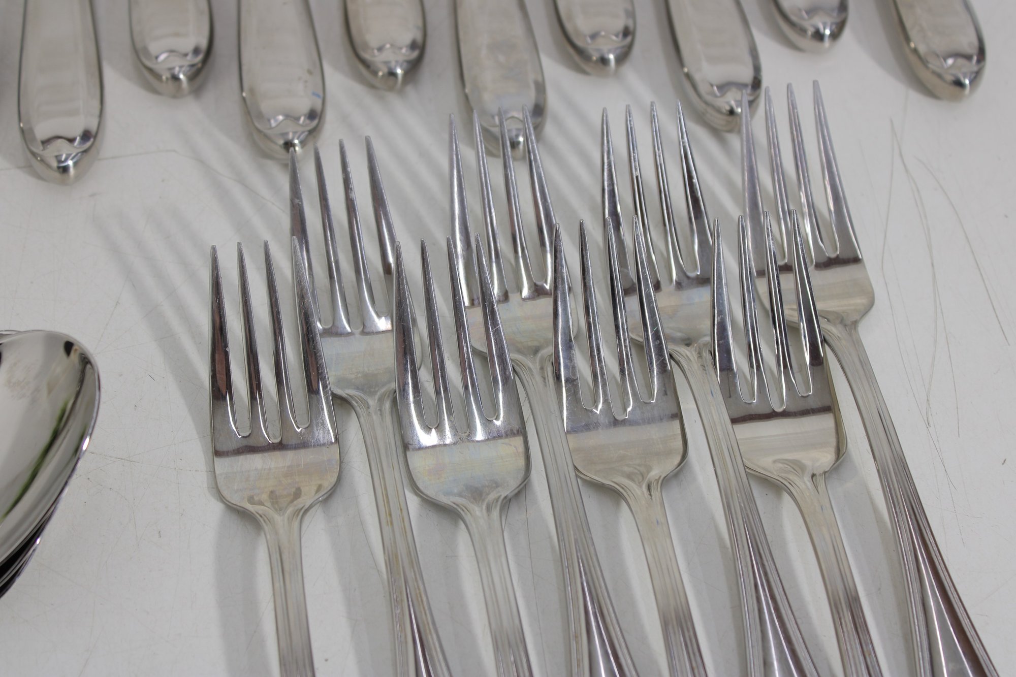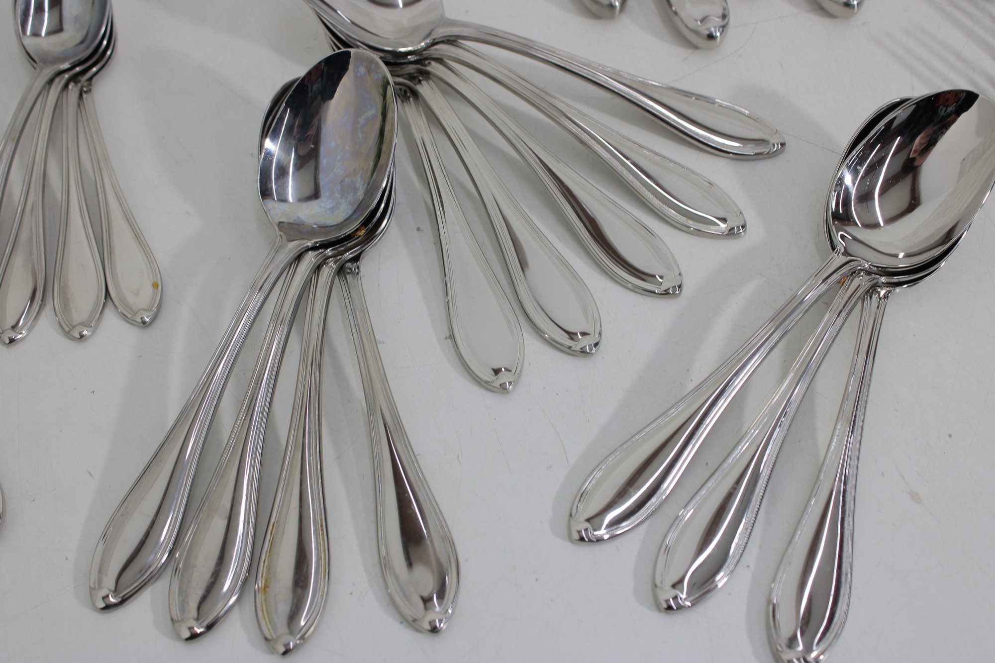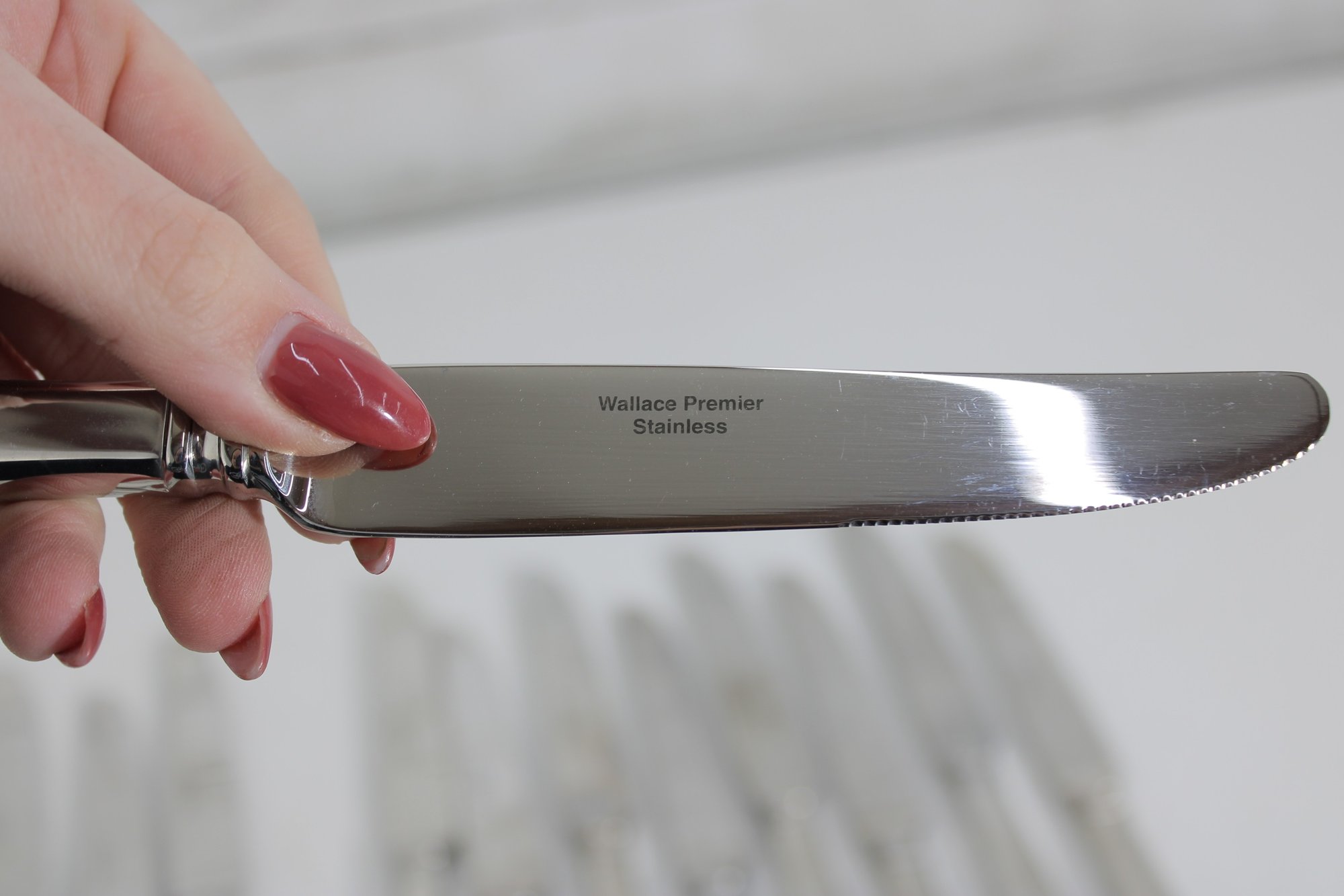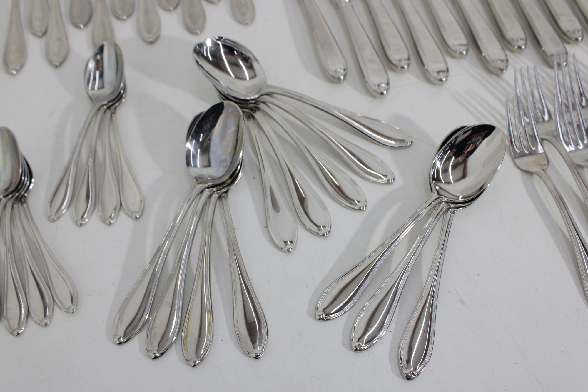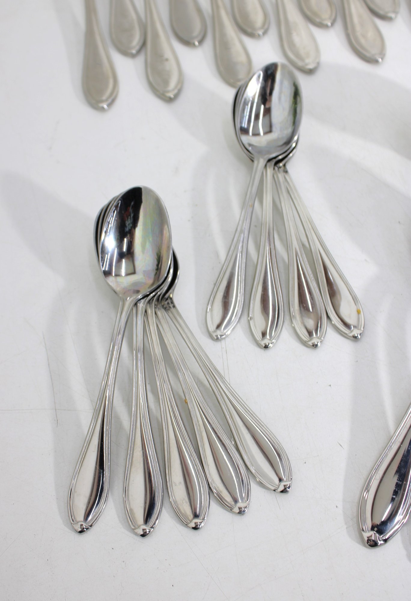 Attractive partial flatware set in the classic Wallace Premiere pattern, crafted in durable stainless steel. This lot includes a coordinated mix of dinner knives, forks, and spoons, all matching in style with graceful, teardrop-shaped handles and a timeless silhouette.