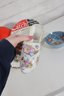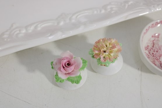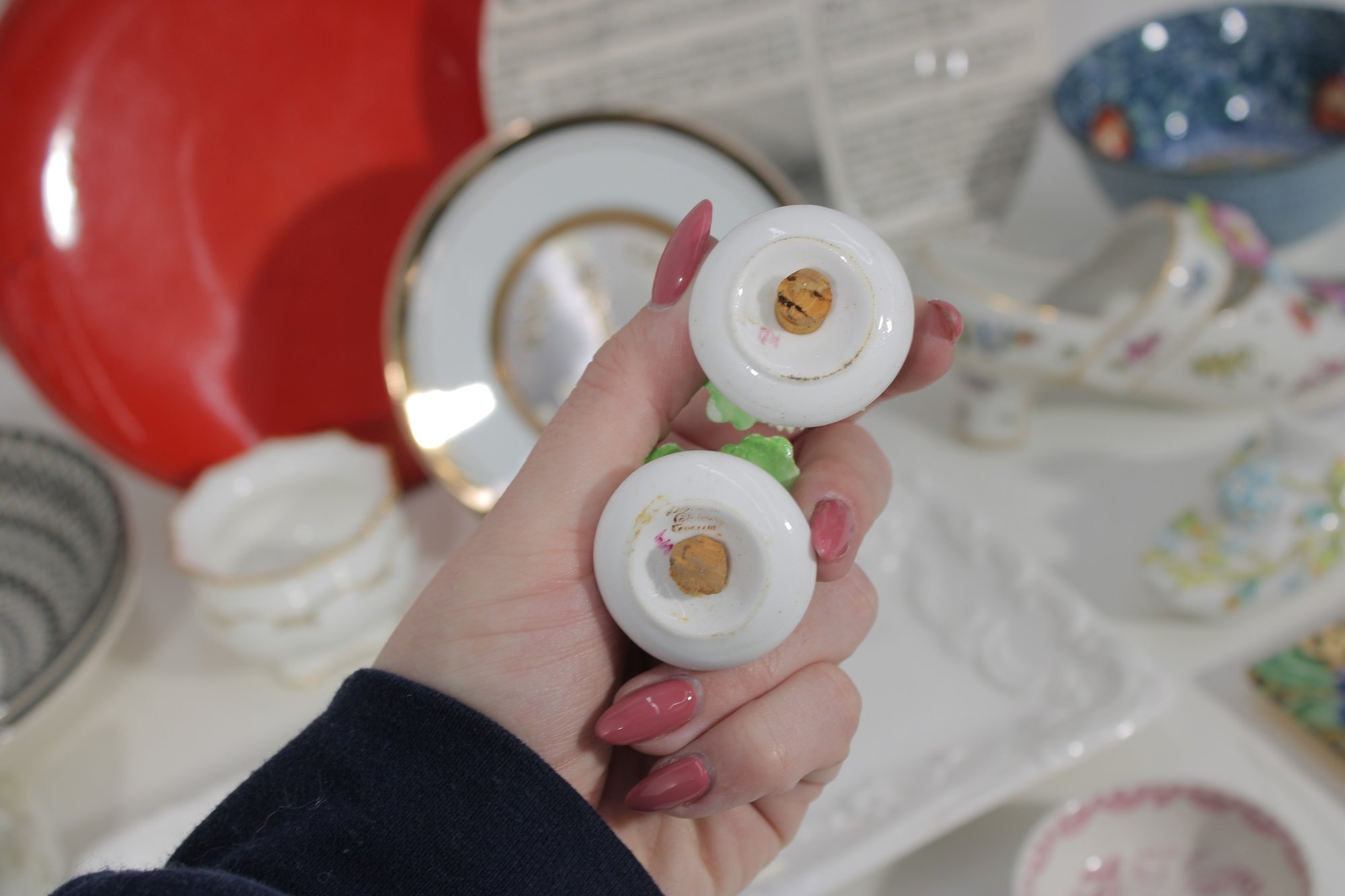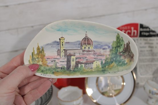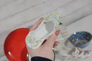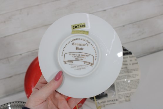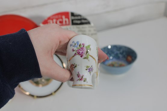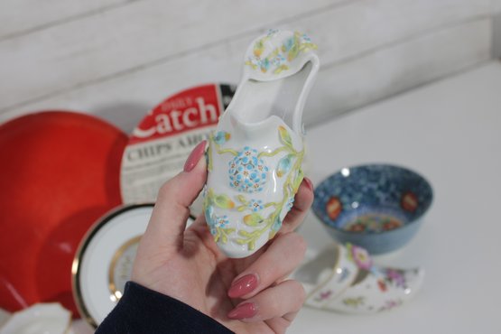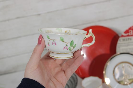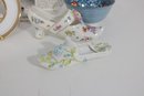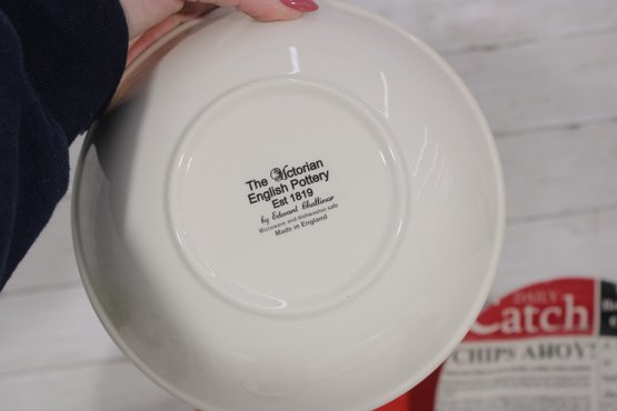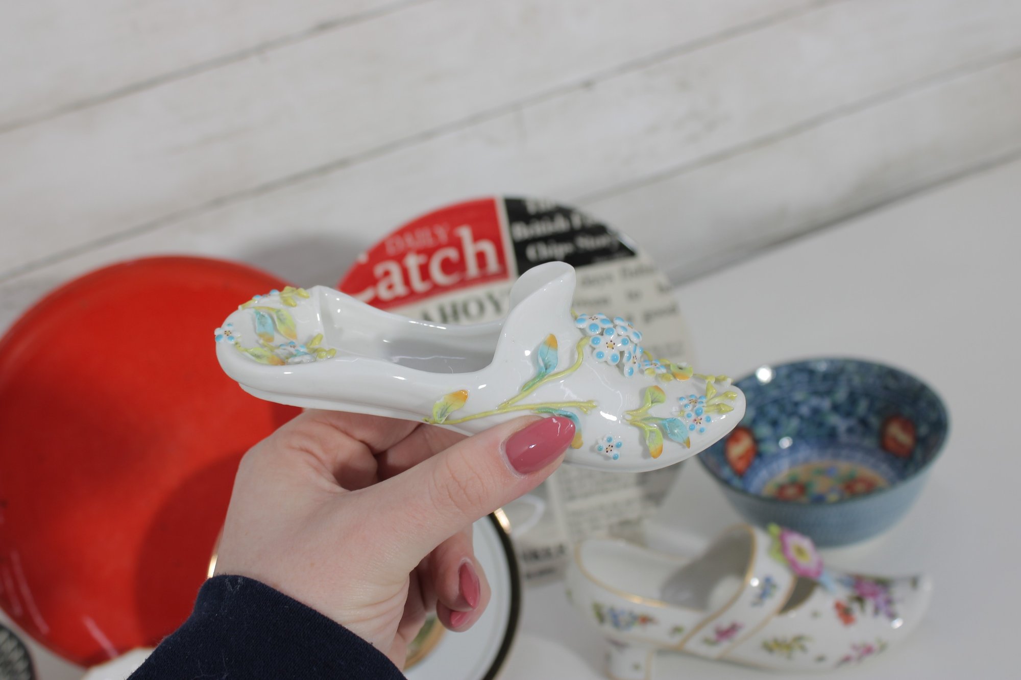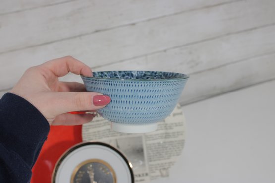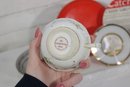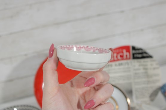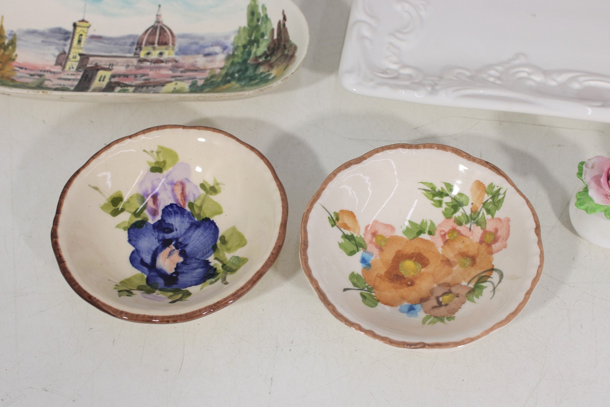Assorted group lot of decorative housewares and tableware, including bowls, plates, small dishes, serving pieces, a red tray, a decorative tin, and other miscellaneous display and kitchen items in a variety of colors, patterns, and materials. A fun mixed lot with useful and decorative pieces suitable for everyday use, resale, collecting, or repurposing.