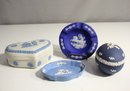 This charming Wedgwood-style jasperware collection features an assortment of pieces in the classic green and blue tones. The lot includes: