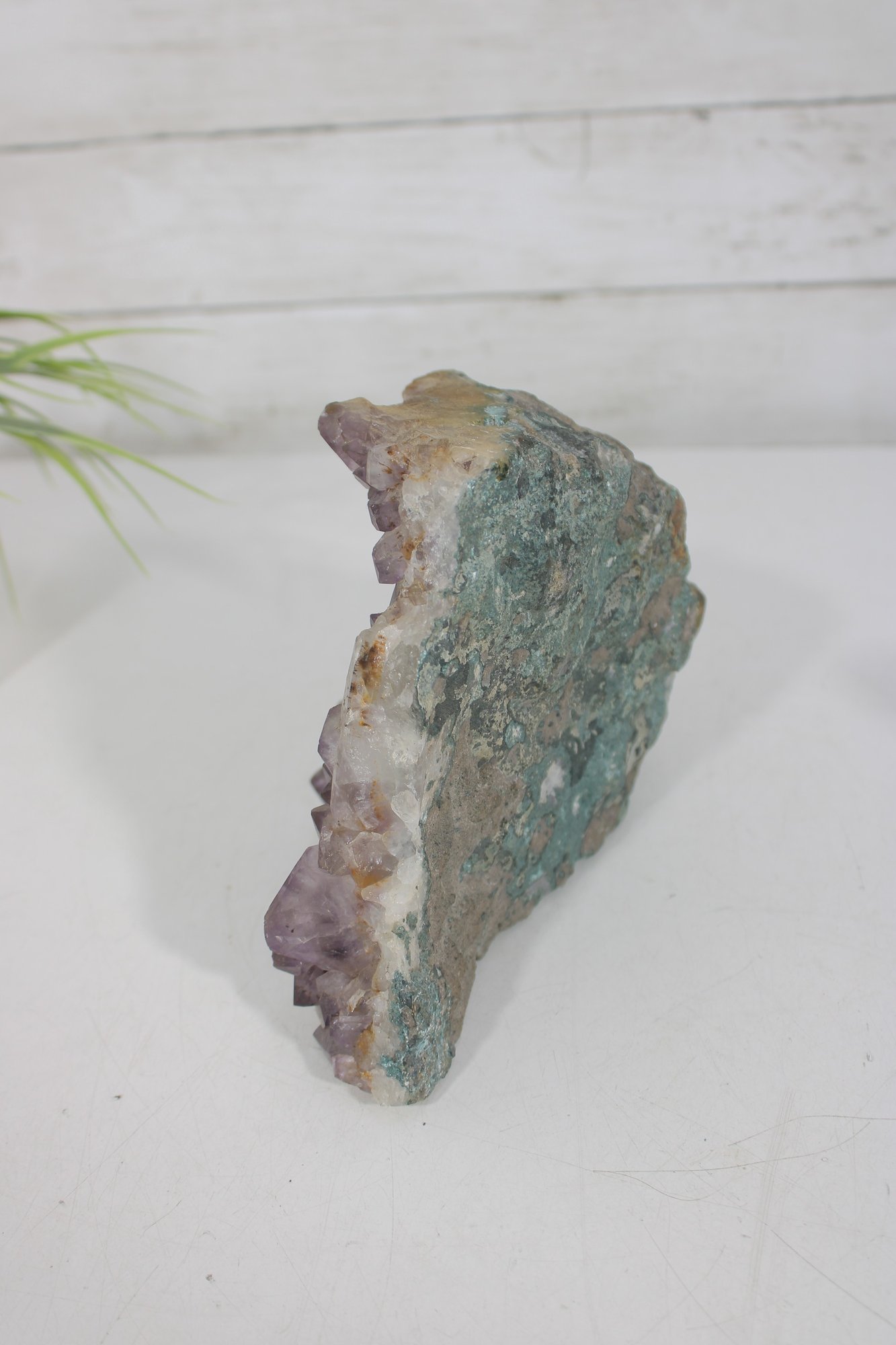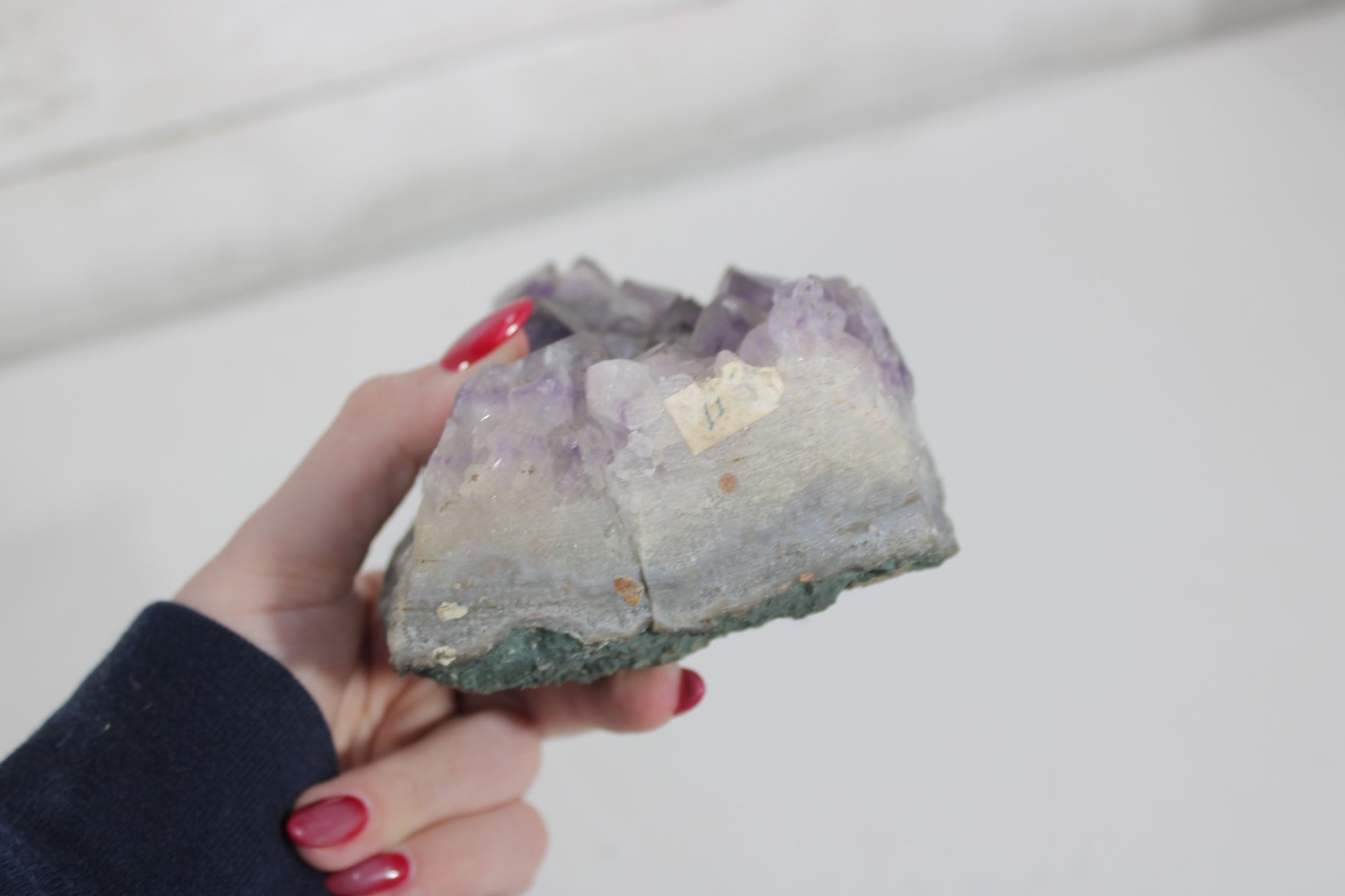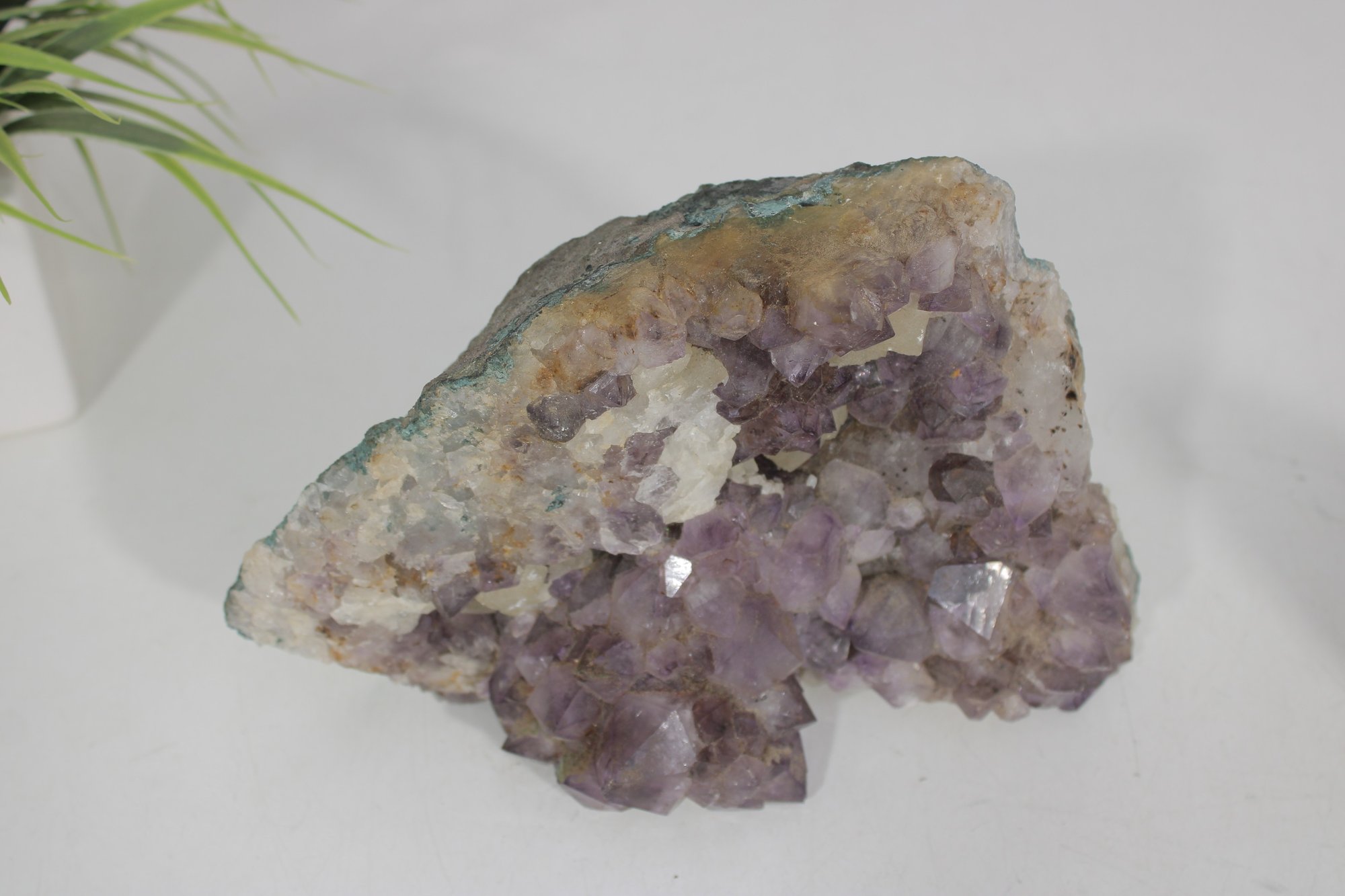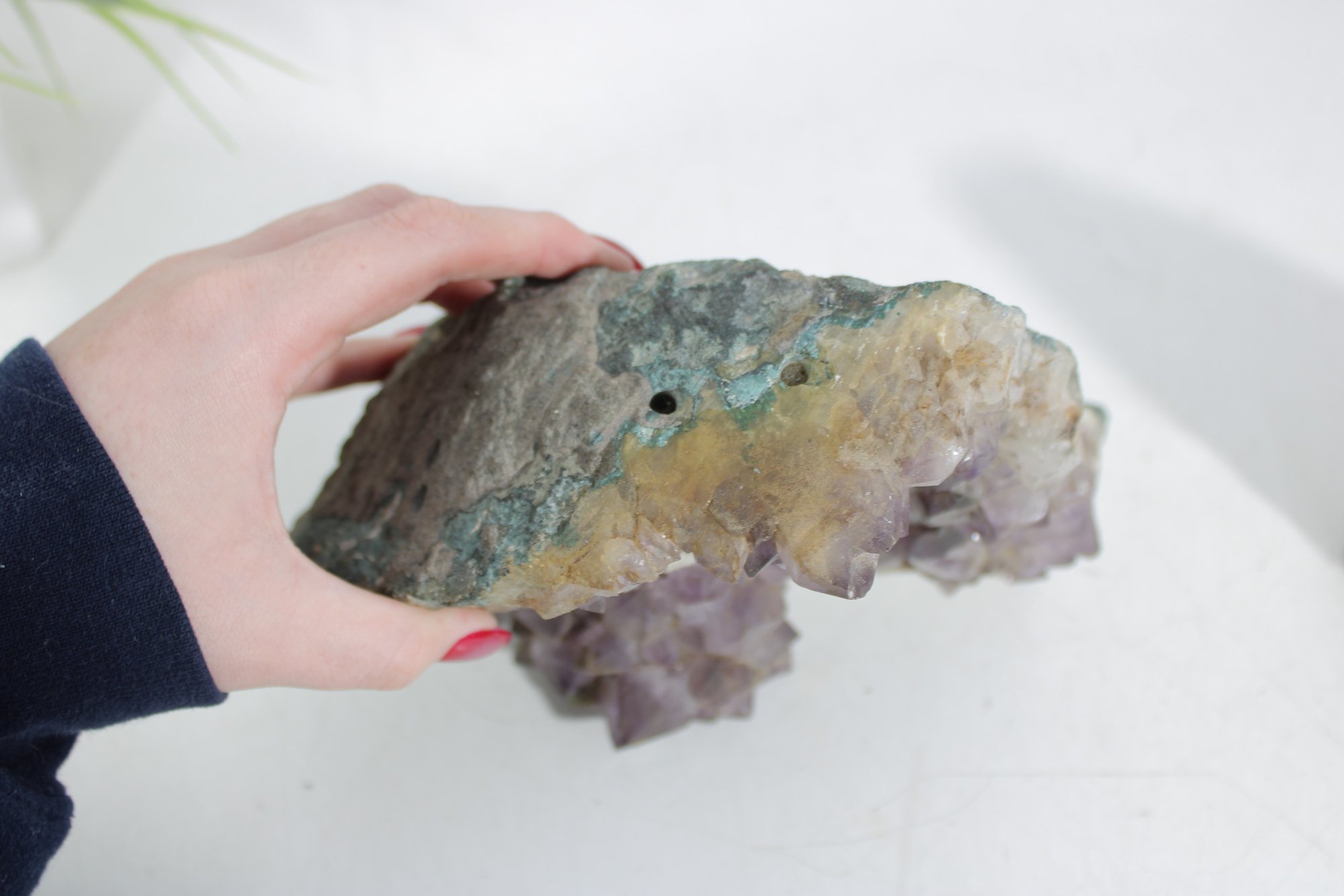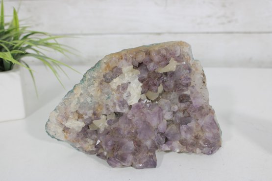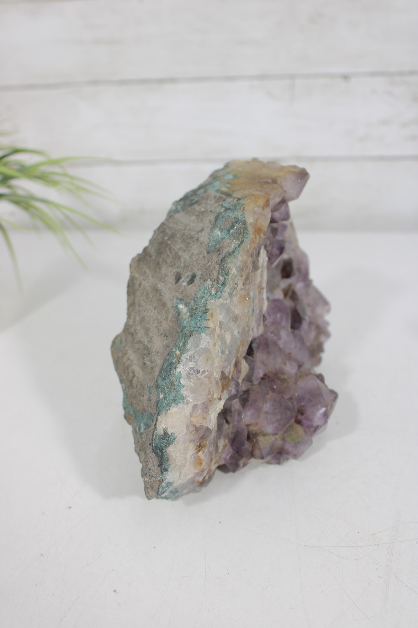 Beautiful pair of natural amethyst crystal clusters featuring rich purple hues and sparkling druzy formations. These raw mineral specimens measure approximately 6 inches and 4.5 inches tall, making them ideal for display, collection, or decorative use.