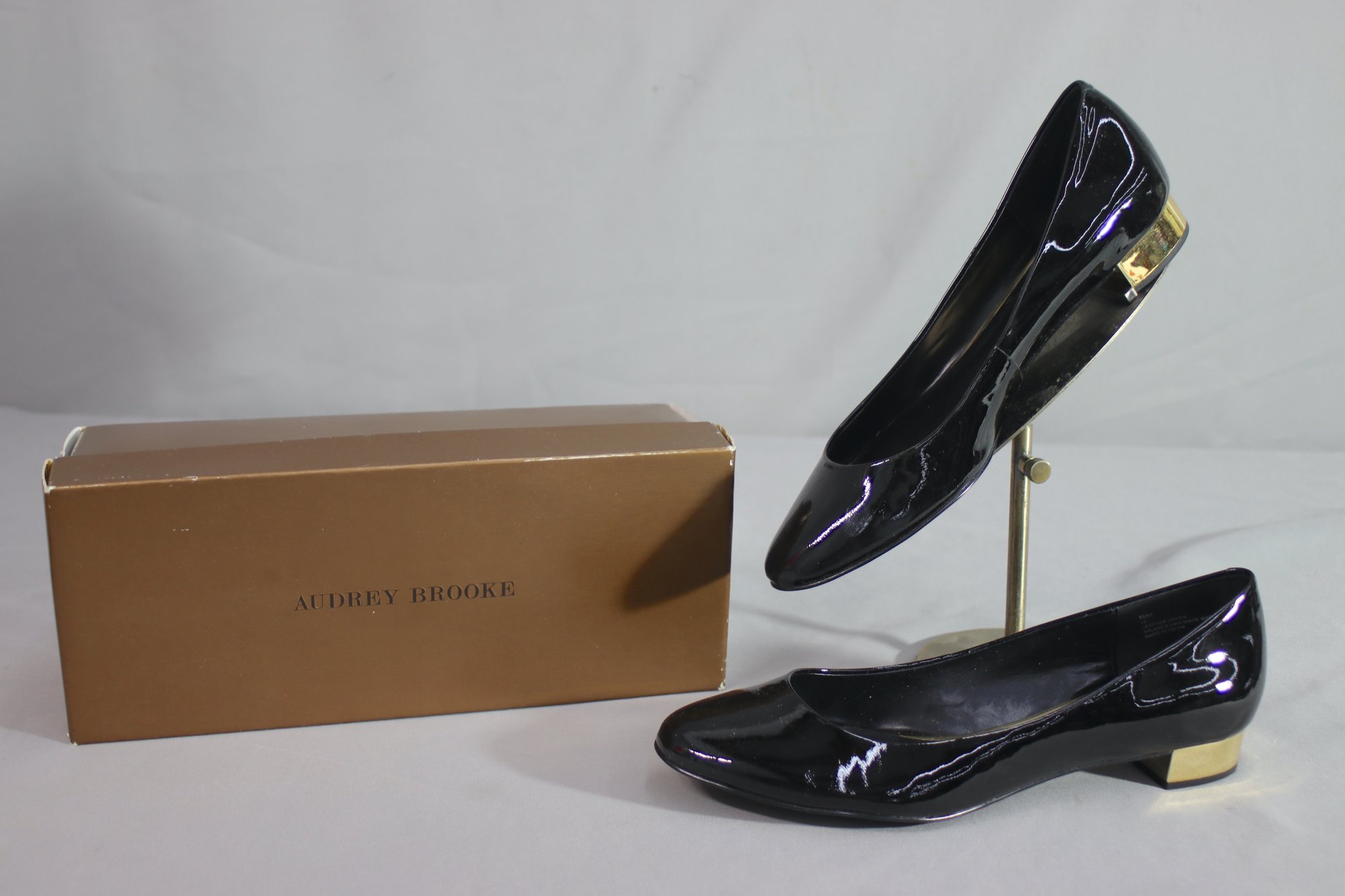 Audrey Brooke Black Patent Leather Round Toe Slip On Block Heels. Size 10m .with Original Box