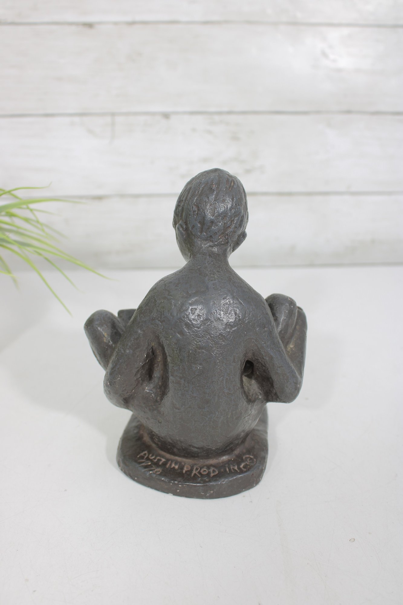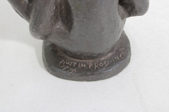 Known for their popular mid-20th century decorative sculptures, Austin Productions pieces are appreciated for their artistic, modernist style and accessible design. This example features soft, rounded lines and a stylized figure seated on a base, focused on a book.