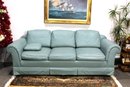 Elevate your living space with this elegant Baker Furniture Leather Sofa in a serene light blue tone. This classic piece boasts a timeless design, featuring rolled arms and plush cushions for ultimate comfort. Made with the superior craftsmanship that Baker Furniture is known for, this sofa is as durable as it is stylish.