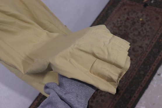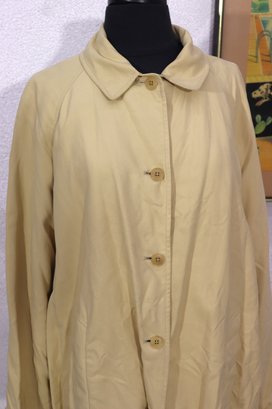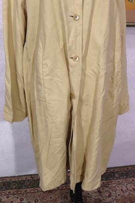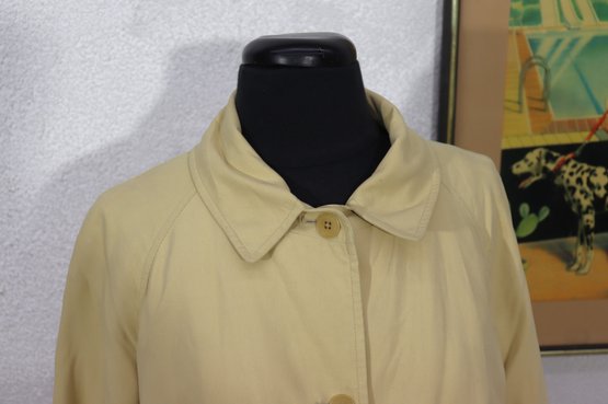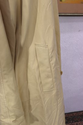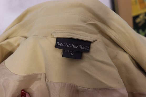 this Banana Republic trench coat in neutral beige is the perfect outerwear staple for any season. Designed with a button front closure, two side pockets, and a smooth full lining, this coat offers both comfort and polished style.