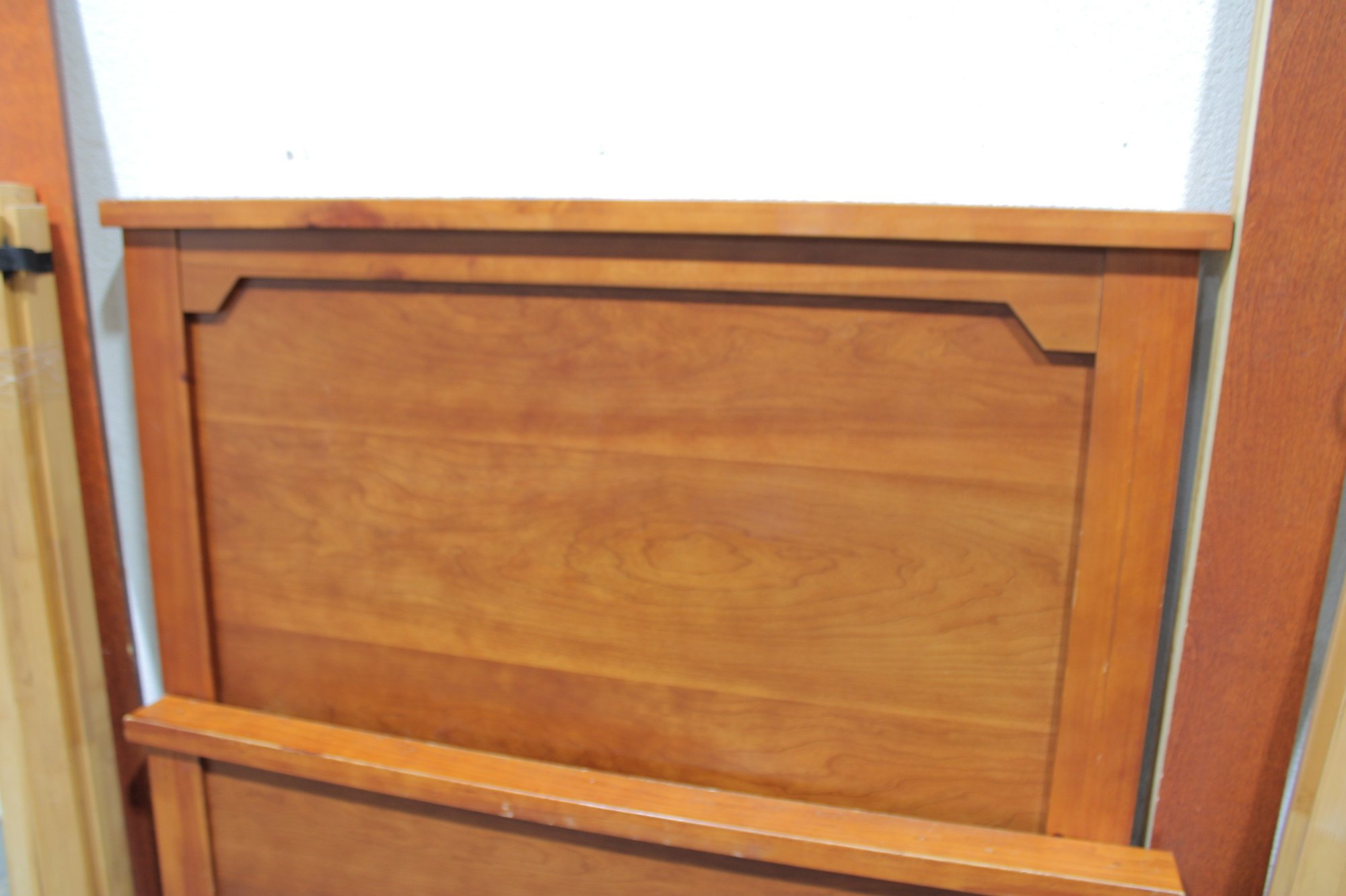 Quality Bassett twin size bed frame featuring a classic wood design with clean lines and warm finish.