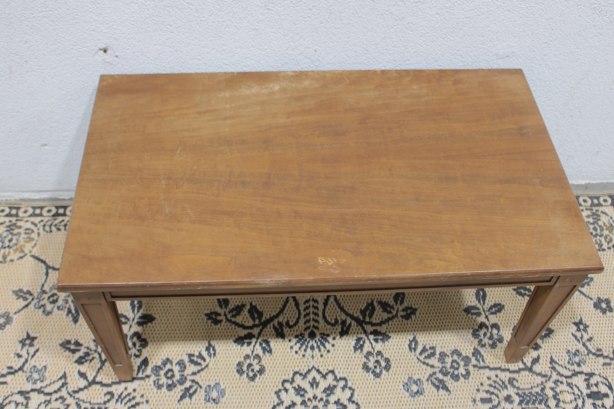 Beacon Hill Collection coffee table, featuring a simple and timeless design that works well with a variety of décor styles. This table showcases a warm wood finish and clean lines, making it a versatile addition to a living room, den, or sitting area.