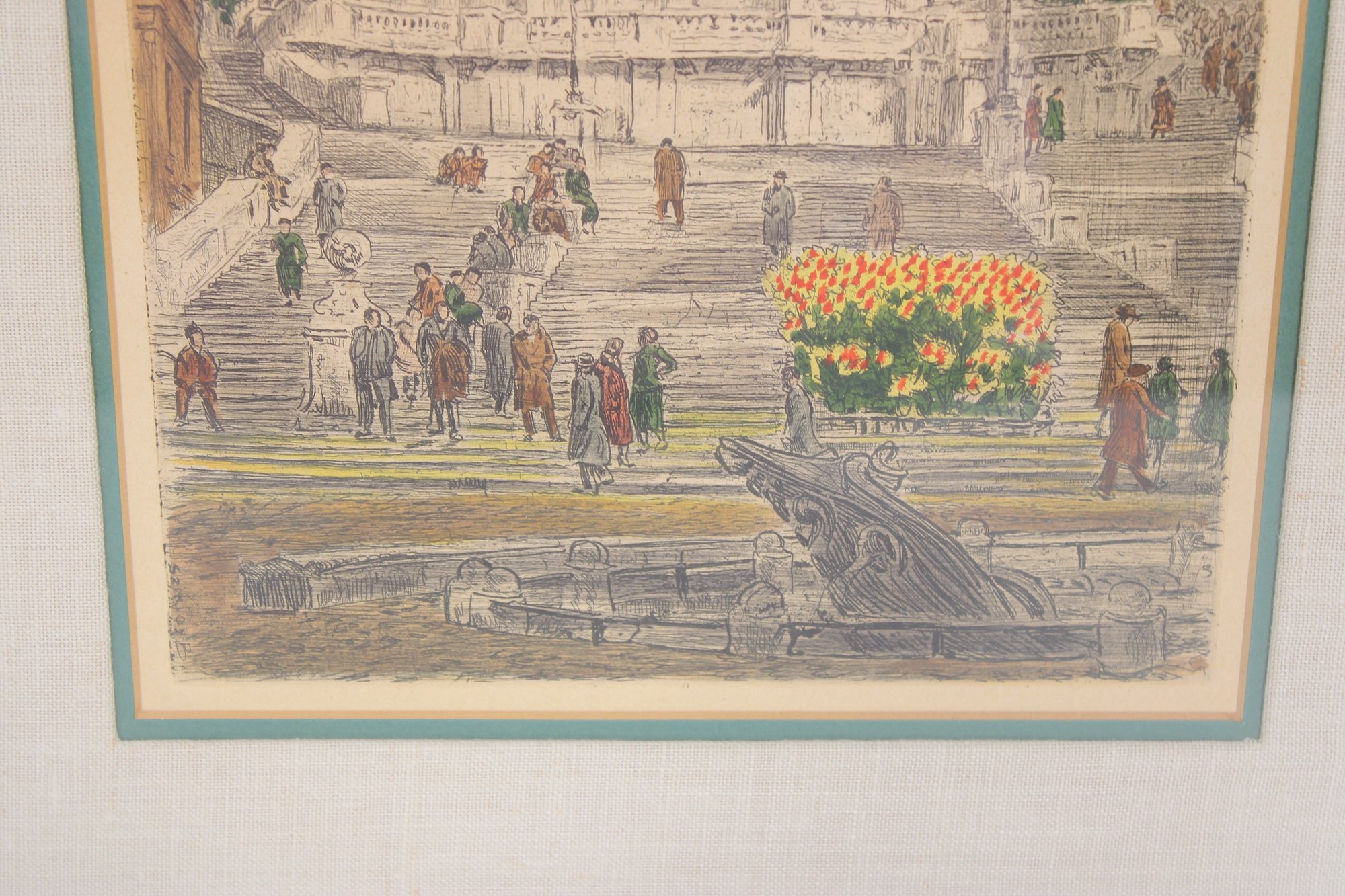 Sziklay’s work captures both architectural detail and everyday life, blending structure with human activity for a charming and timeless scene.