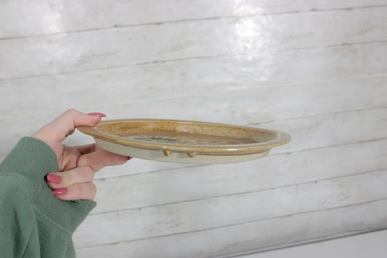 The organic oval form and rich glaze make it perfect as a serving platter, decorative tray, or display piece for farmhouse, rustic, or mid-century inspired interiors.
