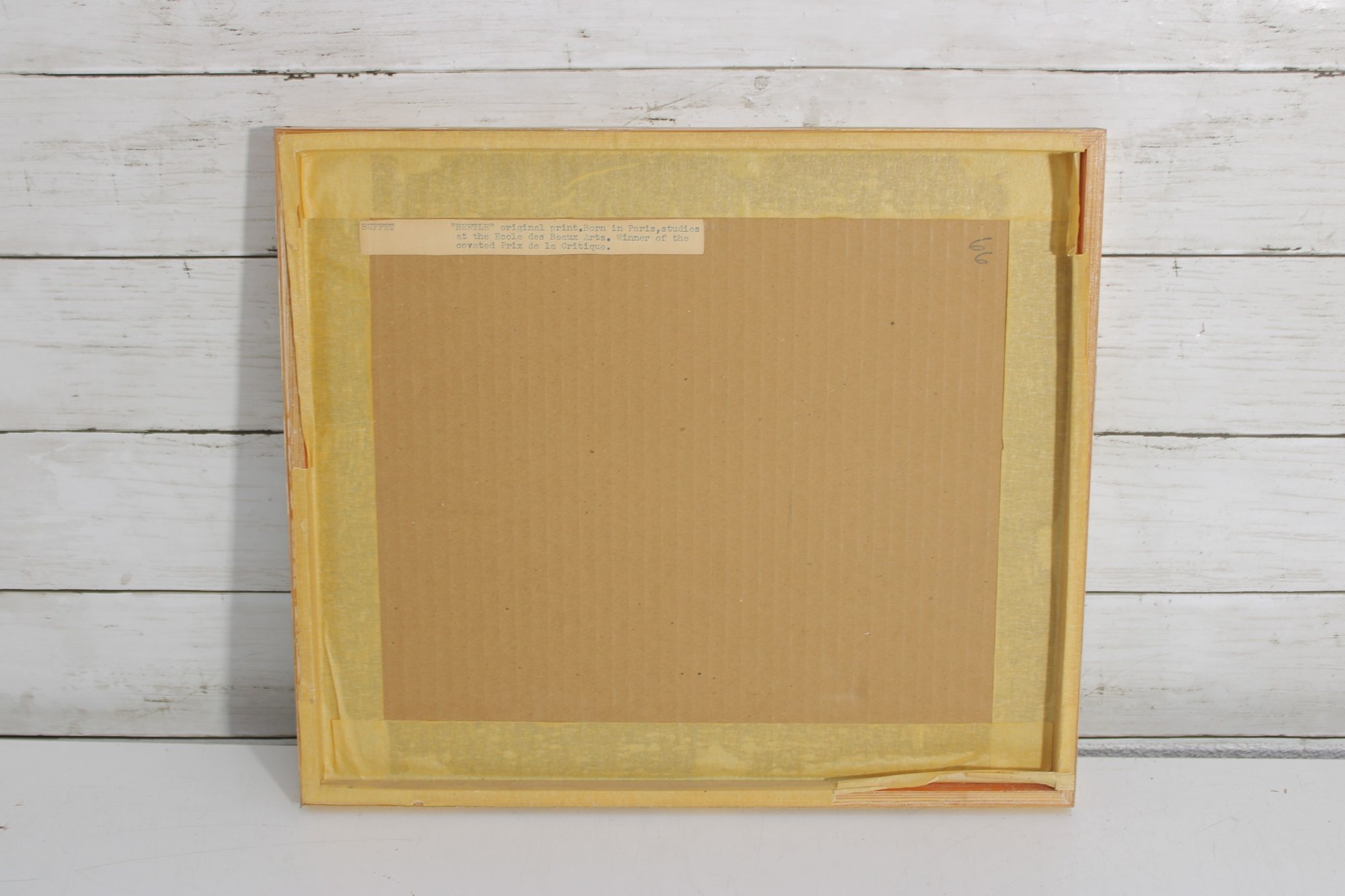 A label on the reverse notes the artist’s background: born in Paris, trained at the École des Beaux-Arts, and recipient of the prestigious Prix de la Critique.