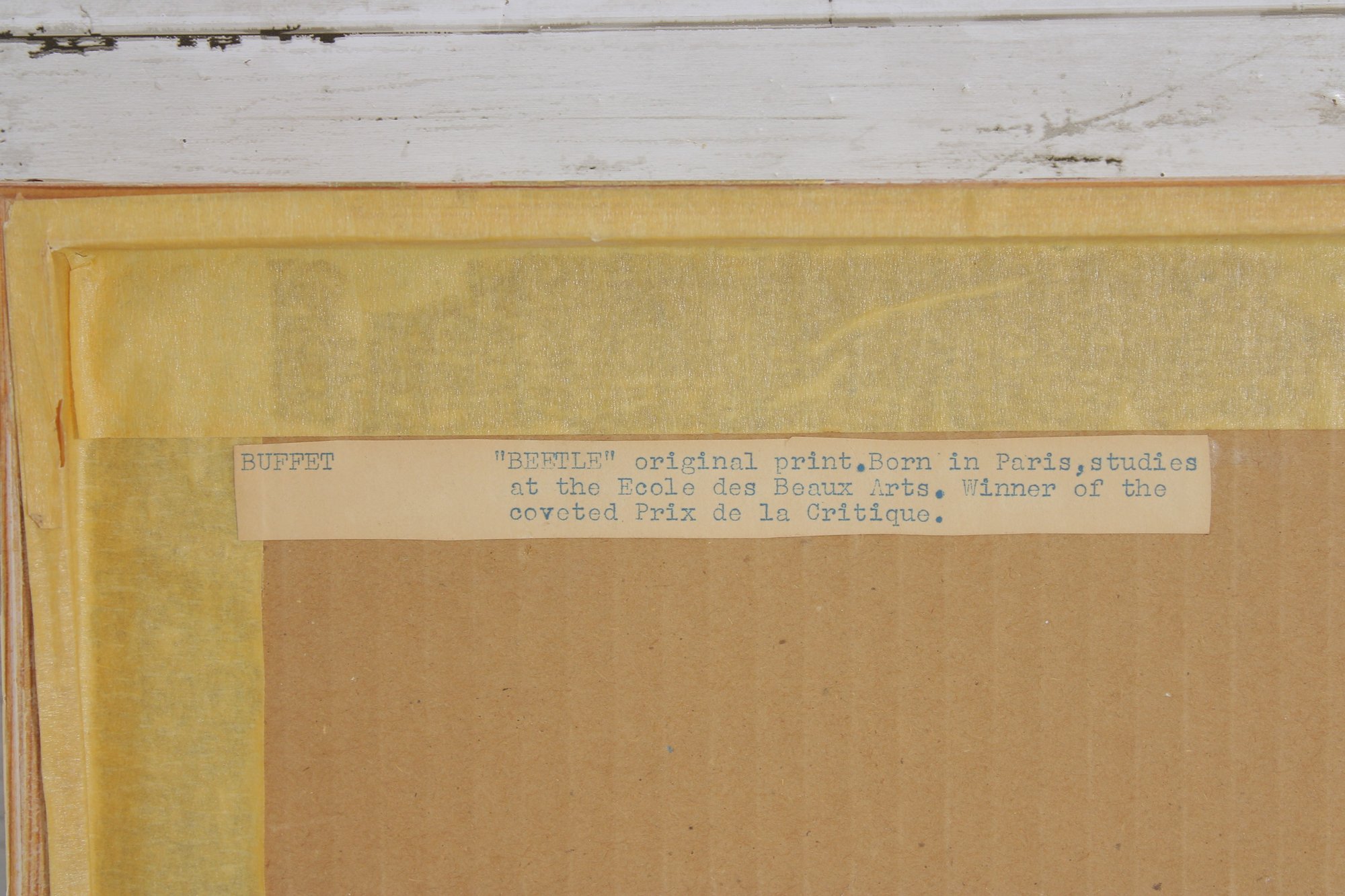 an original print titled “Beetle” by renowned French artist Bernard Buffet. Known for his distinctive linear style and bold compositions, Buffet’s work is highly collectible and recognized worldwide.
