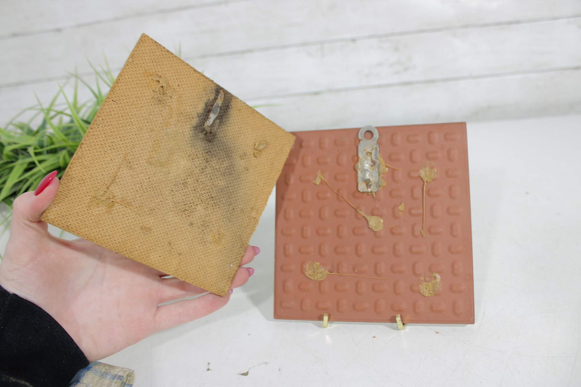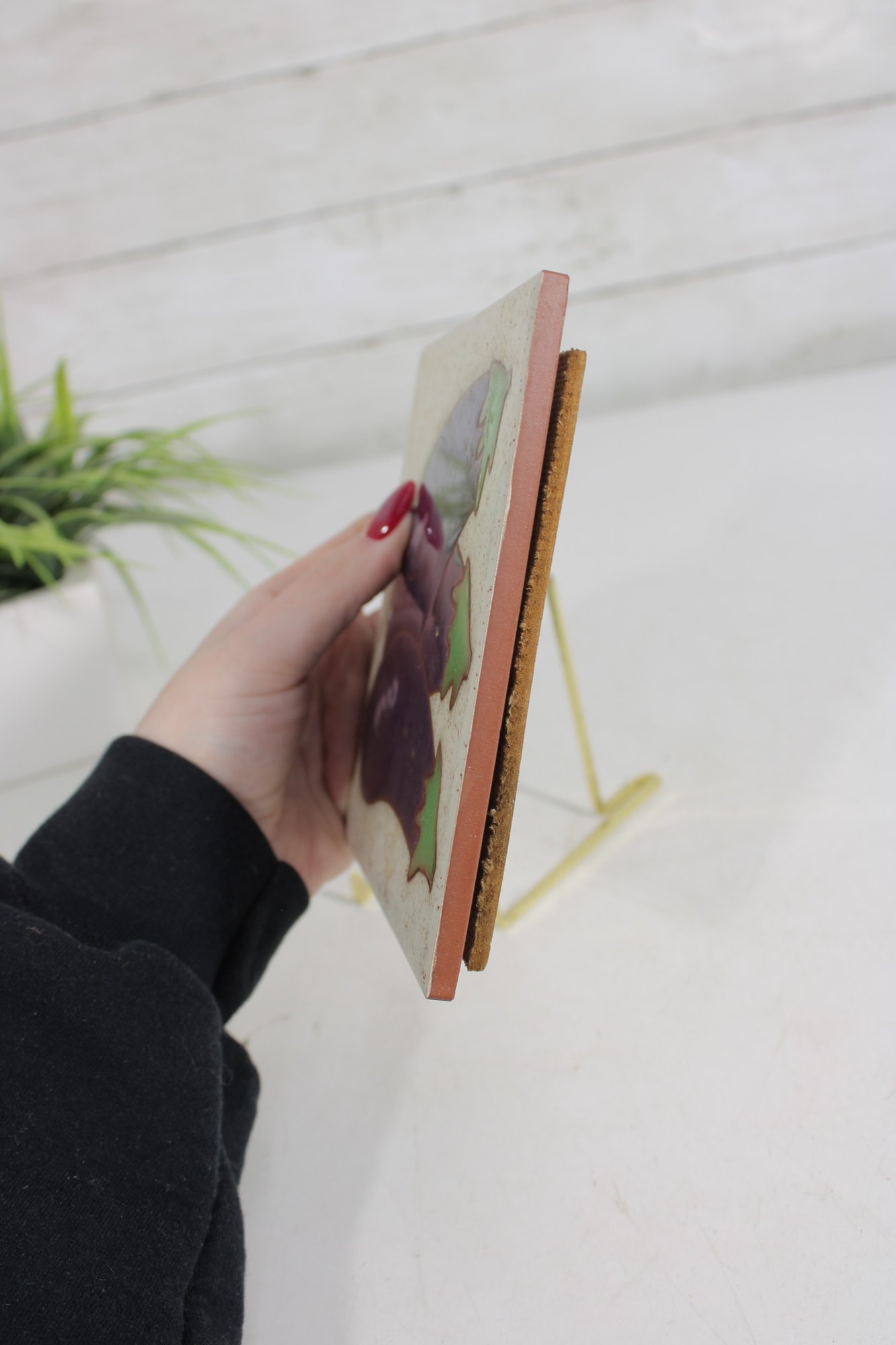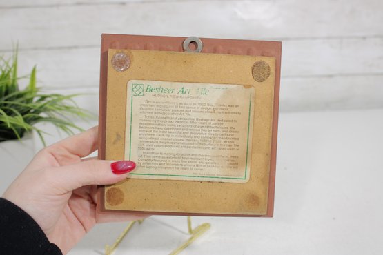 The tile is mounted in a wooden frame and includes the original Bertex Art label on the back, along with a hanger for easy wall display. Its compact 6” square size makes it ideal as a standalone accent or part of a gallery arrangement.