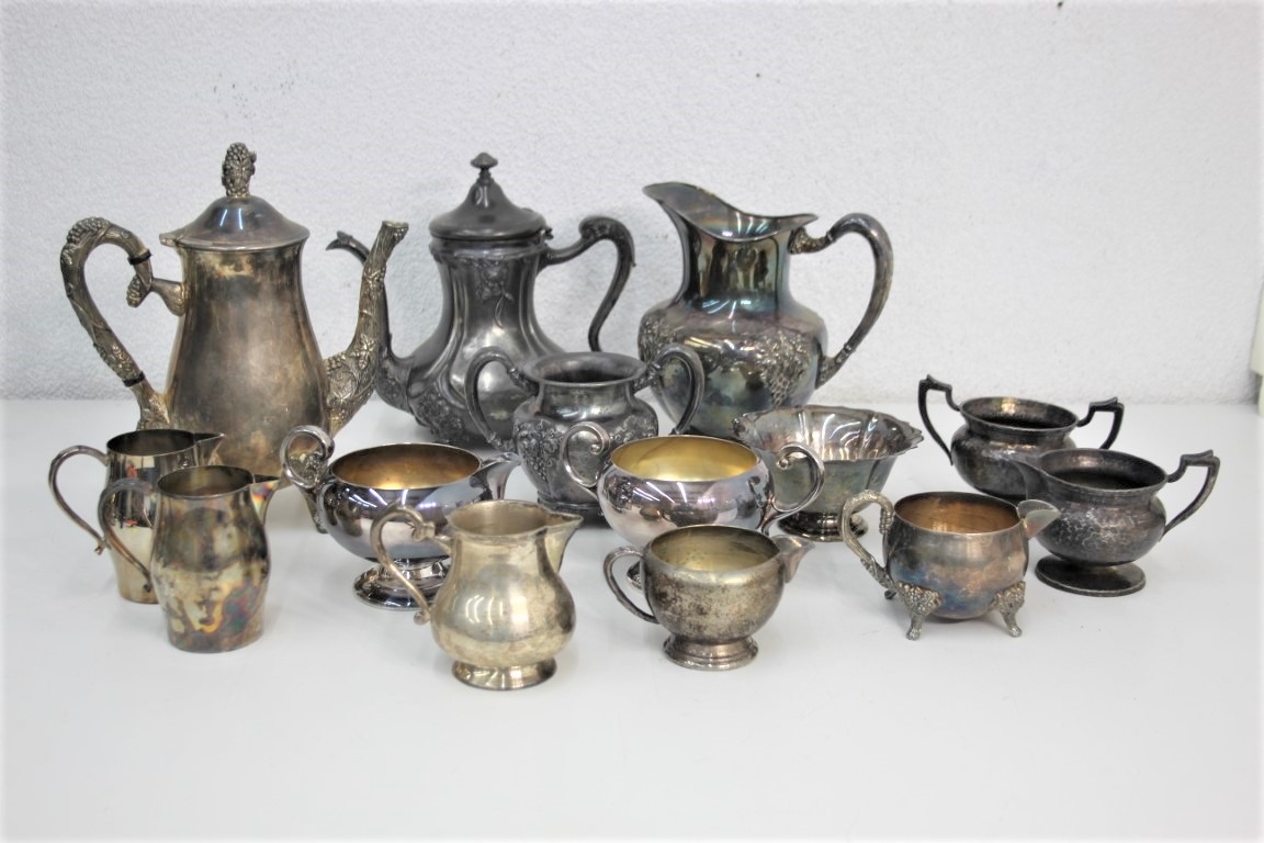 Big Grouping Of Vintage Teapots And Creamer/sugar Vessels - Metal And Silverplate