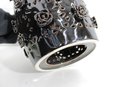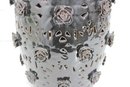 The glossy black finish gives it a sleek, dramatic look, while the openwork cutouts keep the design visually light and full of texture.