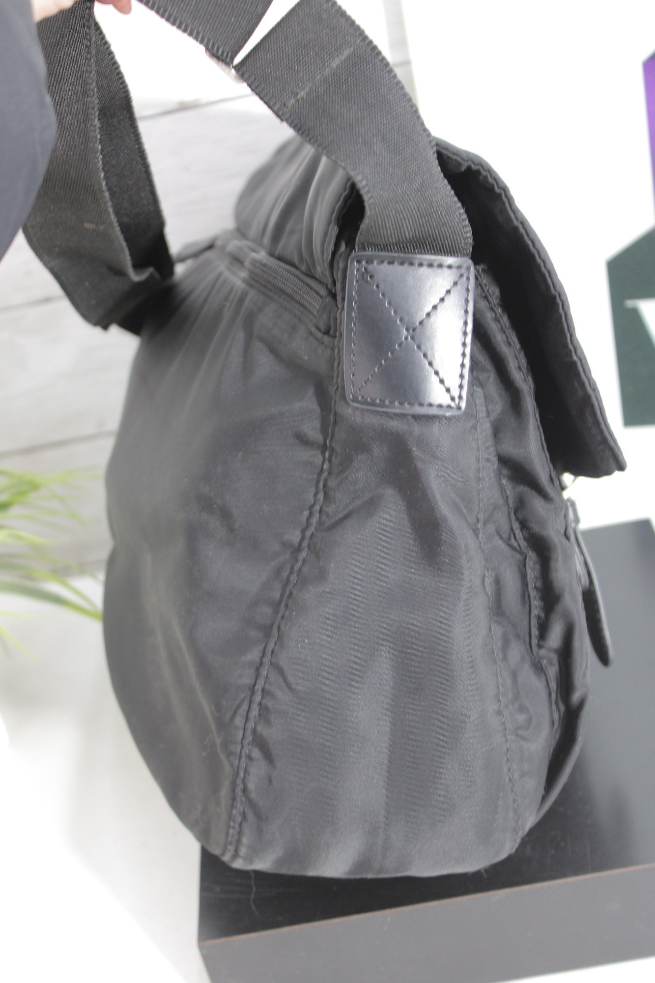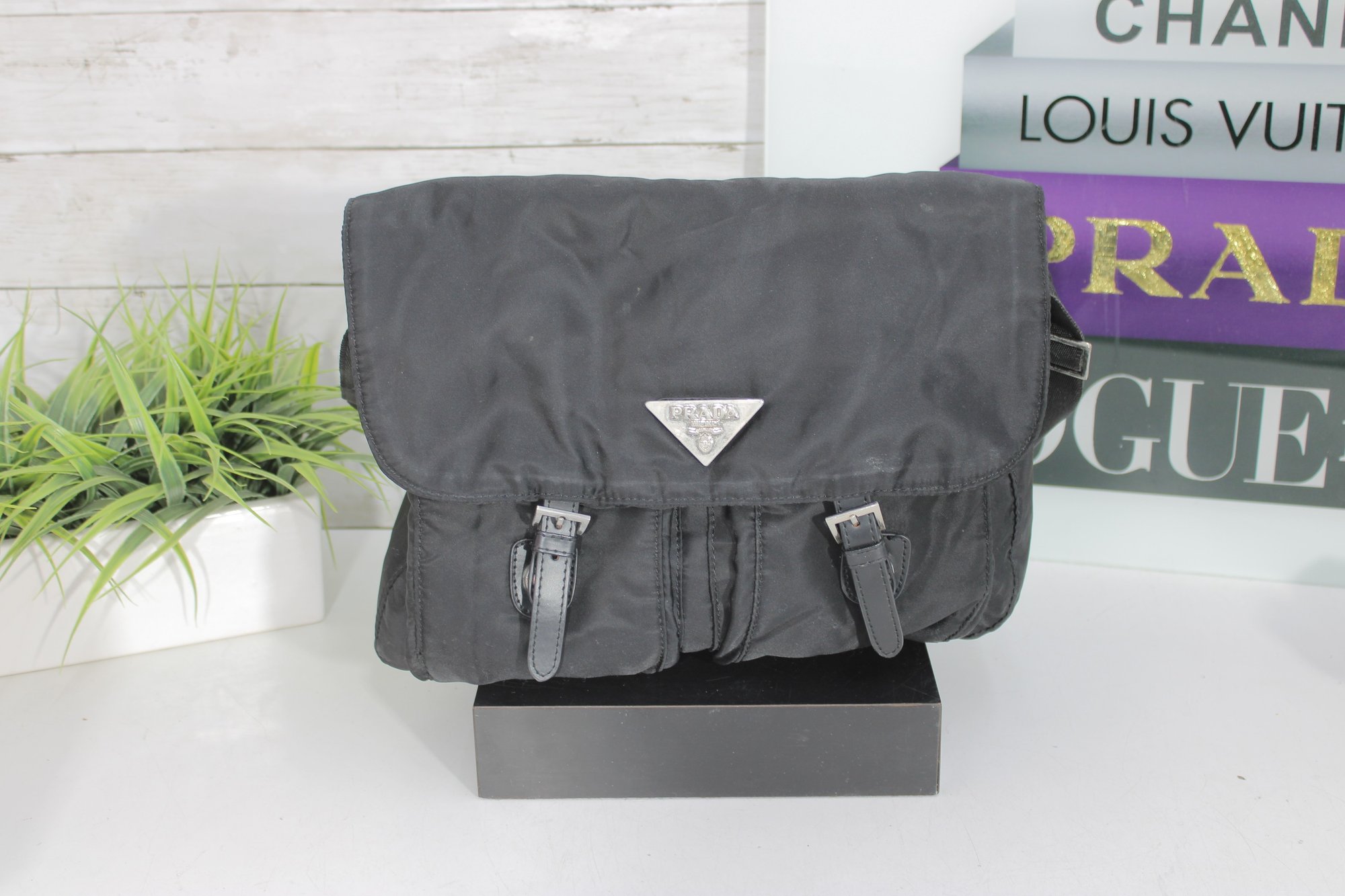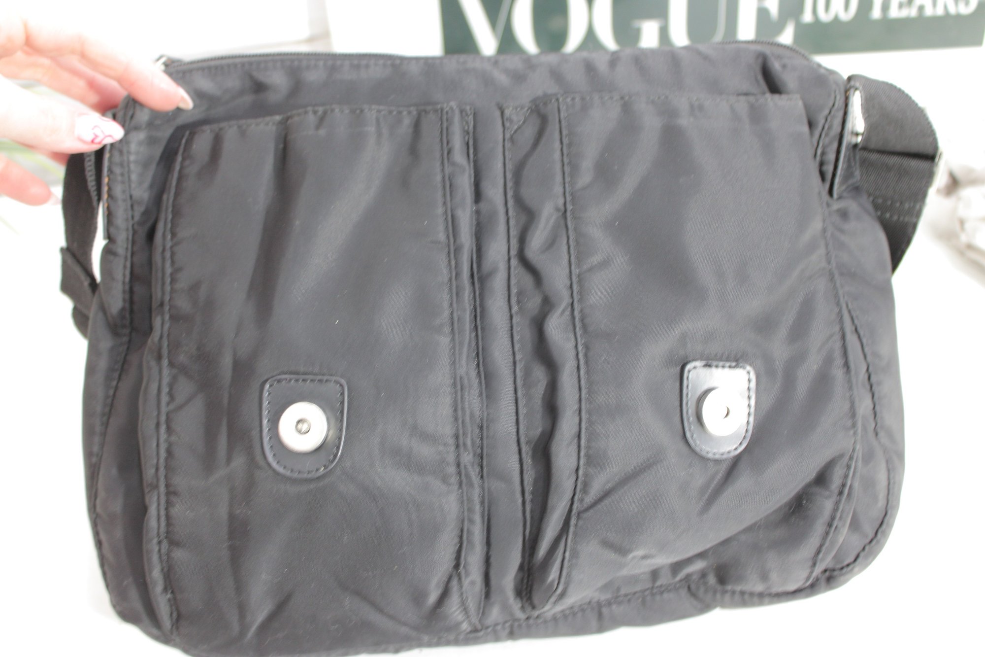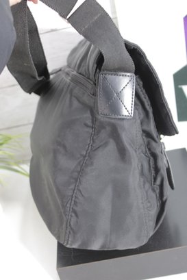 Upgrade your everyday carry with this stylish black messenger crossbody bag featuring iconic minimalist design. Crafted from lightweight nylon with sleek black hardware accents, this bag combines practical function with timeless designer appeal.