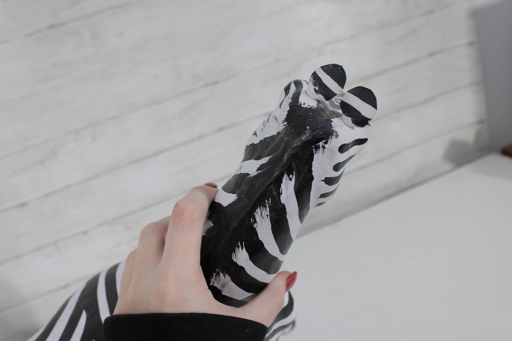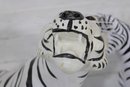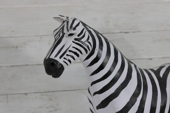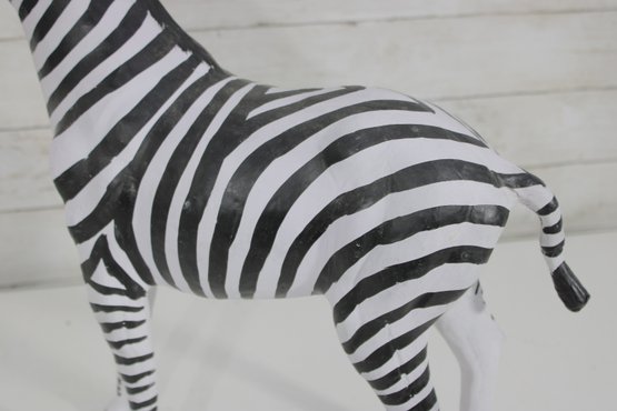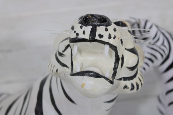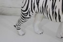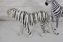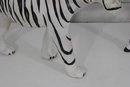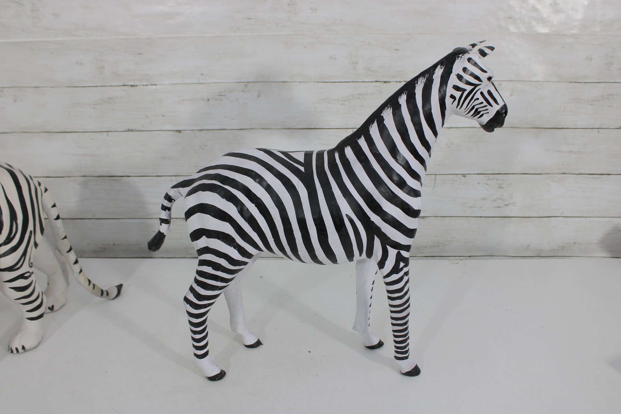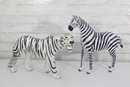 set of two black and white safari animal sculptures featuring a zebra and a tiger, both finished in bold hand-painted striping. These graphic, high-contrast pieces make eye-catching decorative accents with a fun, modern-meets-global feel.
