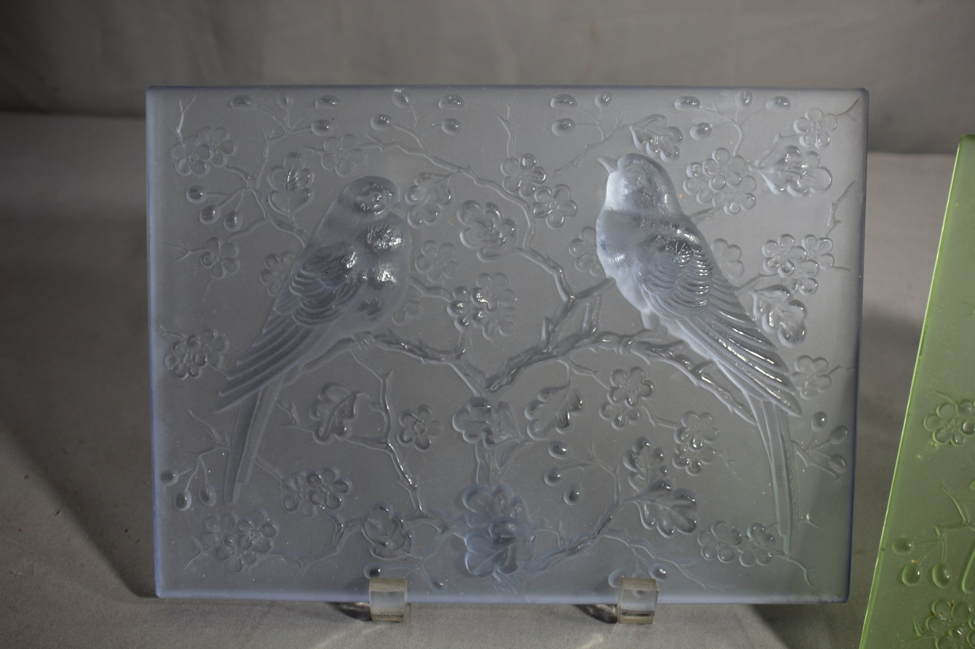 Blue Art Glass Frosted Bird Glass Plaque -7.5" X 10"