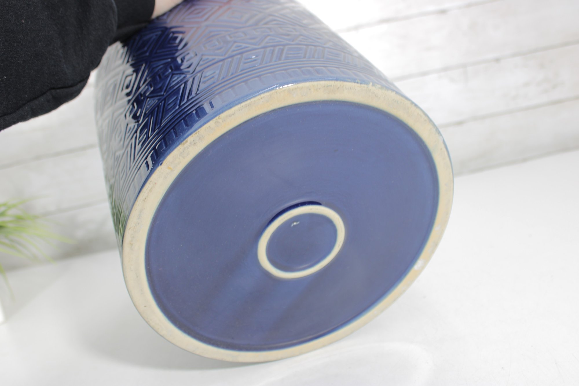 The rich blue glaze gives it a vibrant yet versatile look, making it a great fit for contemporary, boho, or mid-century inspired interiors. The substantial ceramic construction makes it ideal for housing plants, or it can be used as a decorative cache pot or statement accent on its own.
