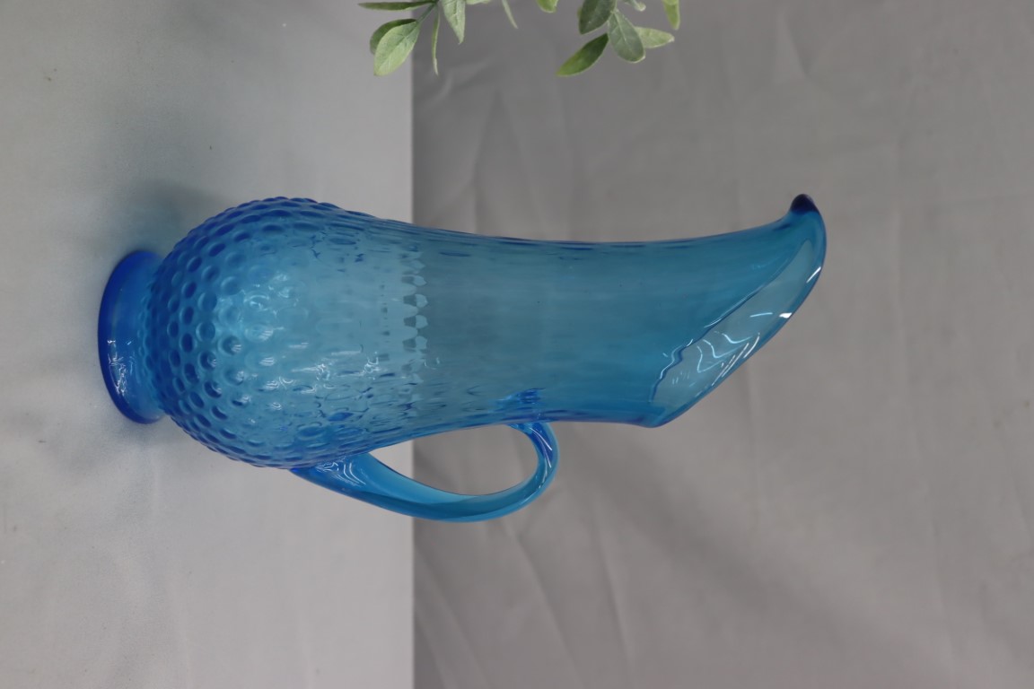 Blue Swung Glass Pitcher-Hand Blown