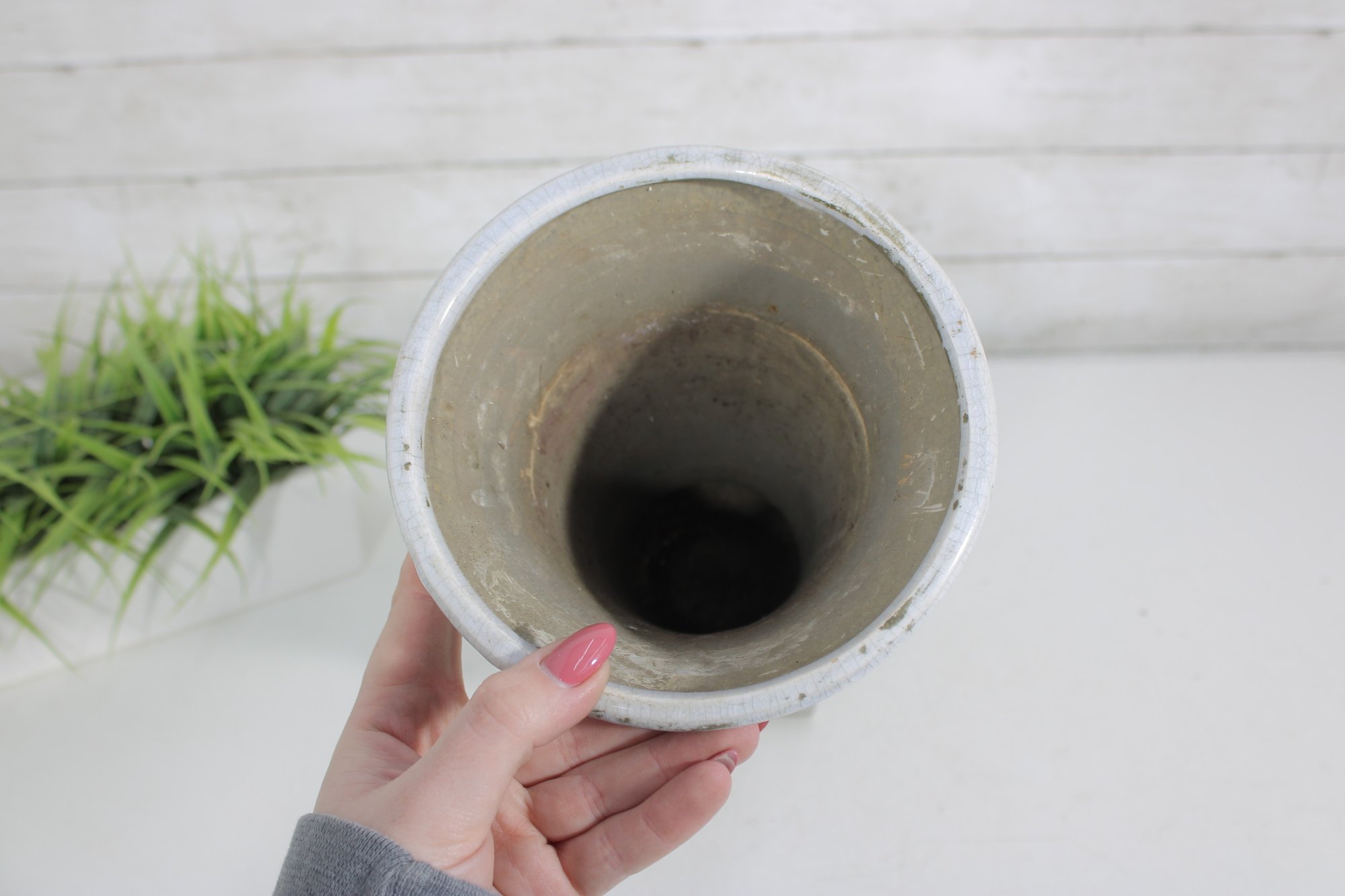 The soft off-white ground is decorated with intricate cobalt blue florals and foliage, offering timeless appeal that complements both traditional and transitional interiors. The tall, trumpet-shaped opening is ideal for displaying dried arrangements or as a standalone decorative accent.
