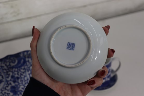 Classic elegance meets timeless tradition in this blue and white porcelain tea set, featuring two beautifully detailed cups with matching saucers and a coordinating serving tray. Each piece showcases intricate oriental-inspired landscape and phoenix motifs, rendered in deep cobalt blue on crisp white porcelain.