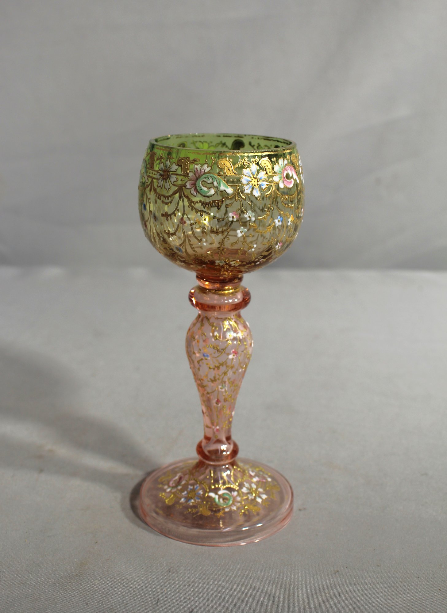 This piece features a stunning green bowl with intricate enameled floral motifs, enhanced by luxurious gold accents that shimmer gracefully in the light,adorned with a floral and vine motif, each detail is meticulously highlighted with gold embellishment, offering an air of opulence.
