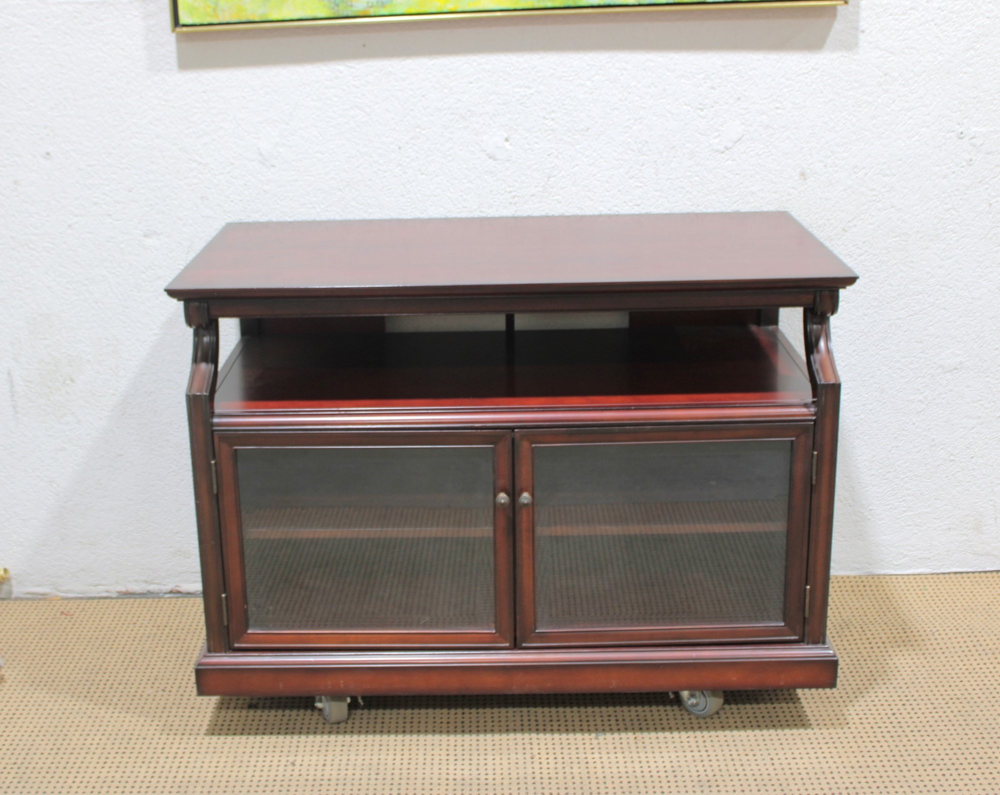 Classic style meets practical storage with this Bombay Company media cabinet / TV stand, a well-built piece designed to organize electronics while adding warmth and traditional character to your room.