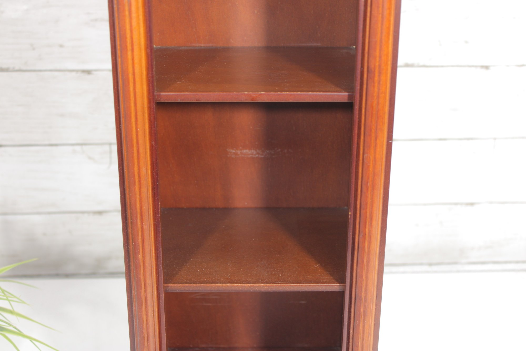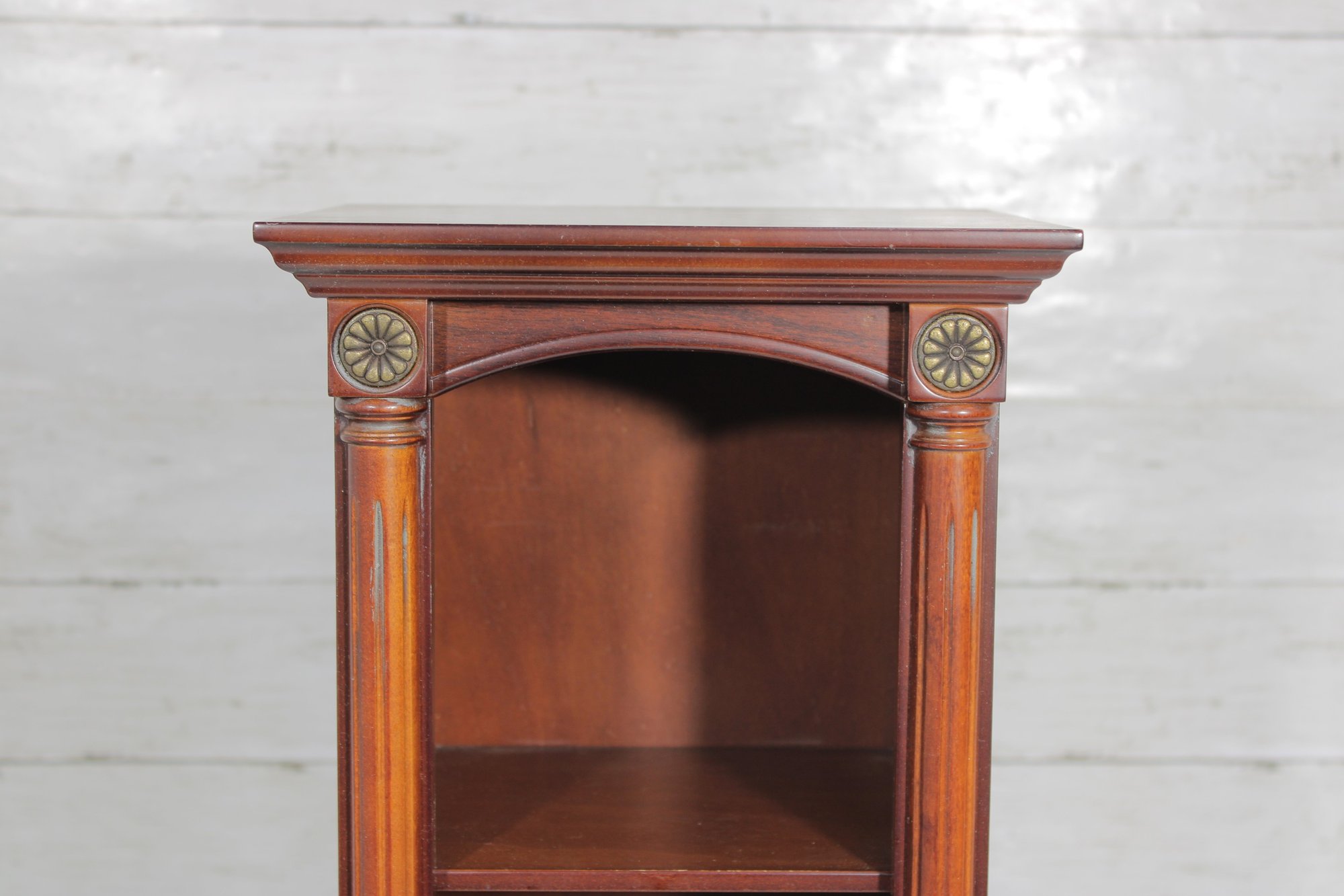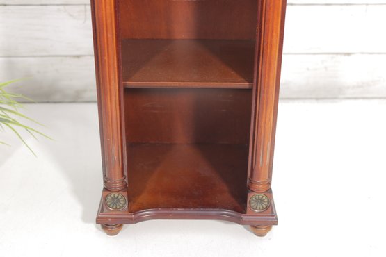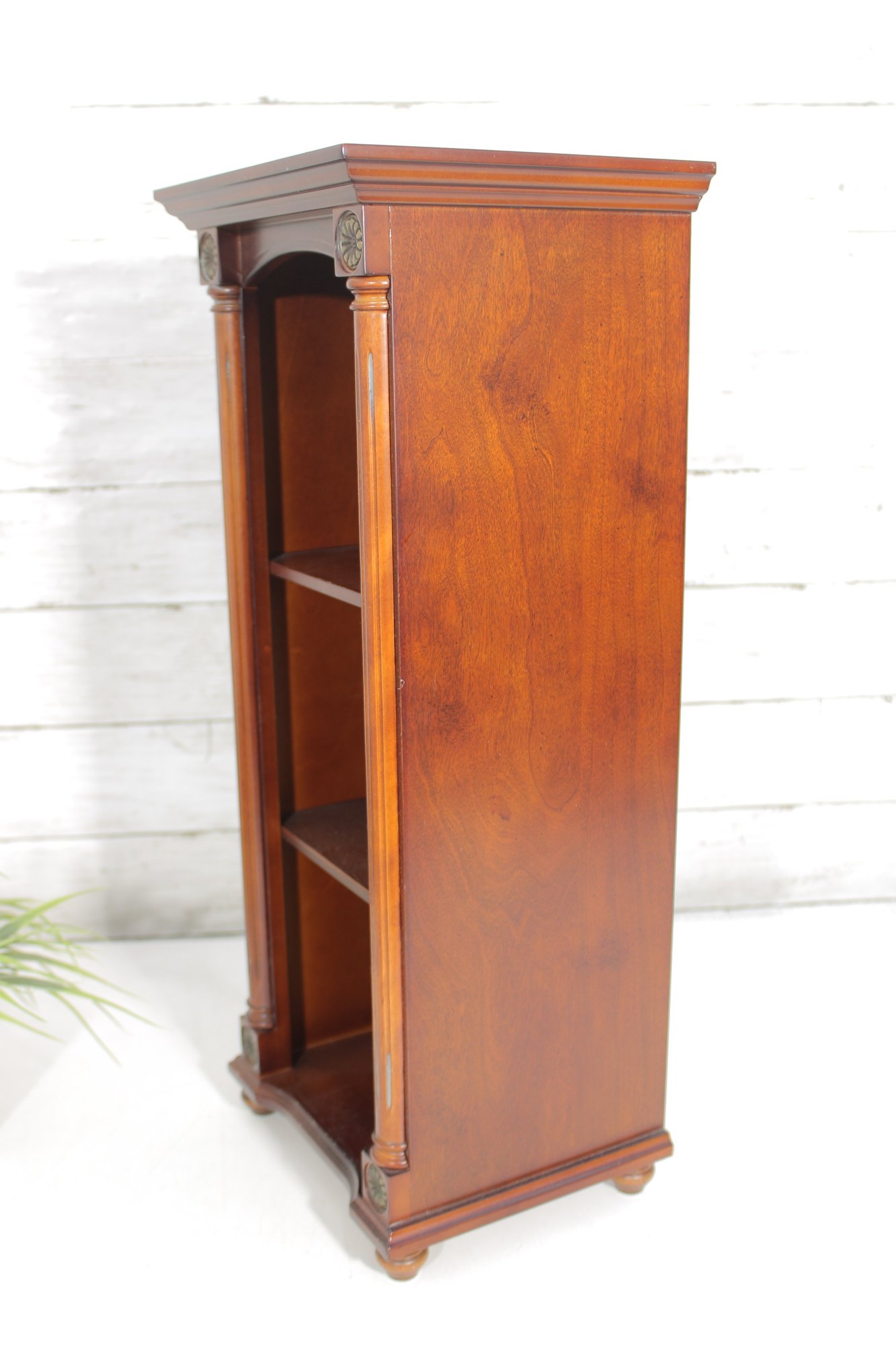 Add classic elegance to your space with this Bombay Company wooden display shelf cabinet. Standing approximately 21 inches tall, this beautifully crafted piece features a traditional design with decorative columns, carved accents, and a rich wood finish.