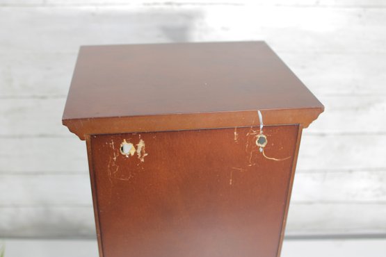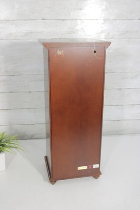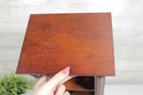 The cabinet includes two interior shelves, making it perfect for displaying small collectibles, figurines, books, or decorative accents. Its compact size (approx. 9” wide x 7.5” deep) makes it ideal for tabletops, desks, or tight spaces where you want to add a touch of sophistication.