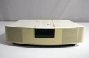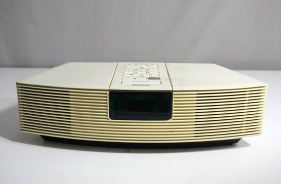 This classic Bose Wave Radio AWR1-1W offers excellent sound quality and a sleek design. The unit features AM/FM radio, alarm clock functionality, and signature Bose audio clarity. It is in good working condition with some minor signs of cosmetic wear consistent with age. Ideal for those seeking vintage electronics or a high-quality tabletop radio with a minimalist aesthetic.