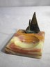 Discover the allure of nautical elegance with this unique ashtray, featuring a meticulously crafted bronze sailboat atop a stunning onyx marble base. This decorative piece combines artistry with functionality,