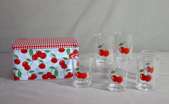Gibson Cherry Glass Set By Jesse Steele In Decorative Tin -6 Juice Glass