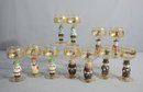 Each glass is a delightful ode to craftsmanship, featuring a unique figural stem that showcases a variety of charming characters dressed in traditional German attire. The bowl of the glasses is adorned with a beautiful floral motif in gold, adding a layer of elegance and festivity.