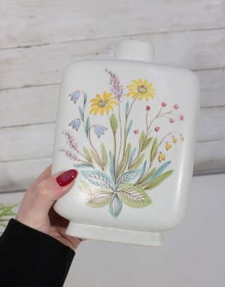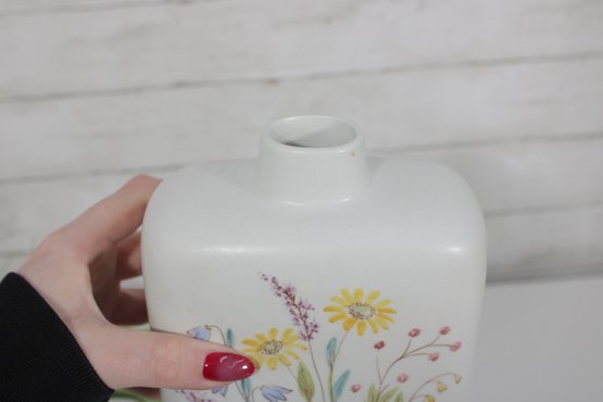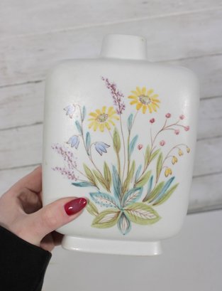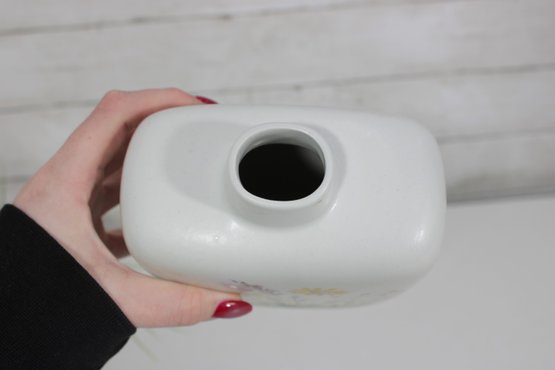 stoneware vase designed by Carl-Harry Stålhane for Rörstrand, one of Sweden’s most celebrated ceramic designers. This beautifully balanced Mid-Century Modern piece features a soft matte white glaze adorned with delicate hand-decorated floral motifs in gentle pastel tones.