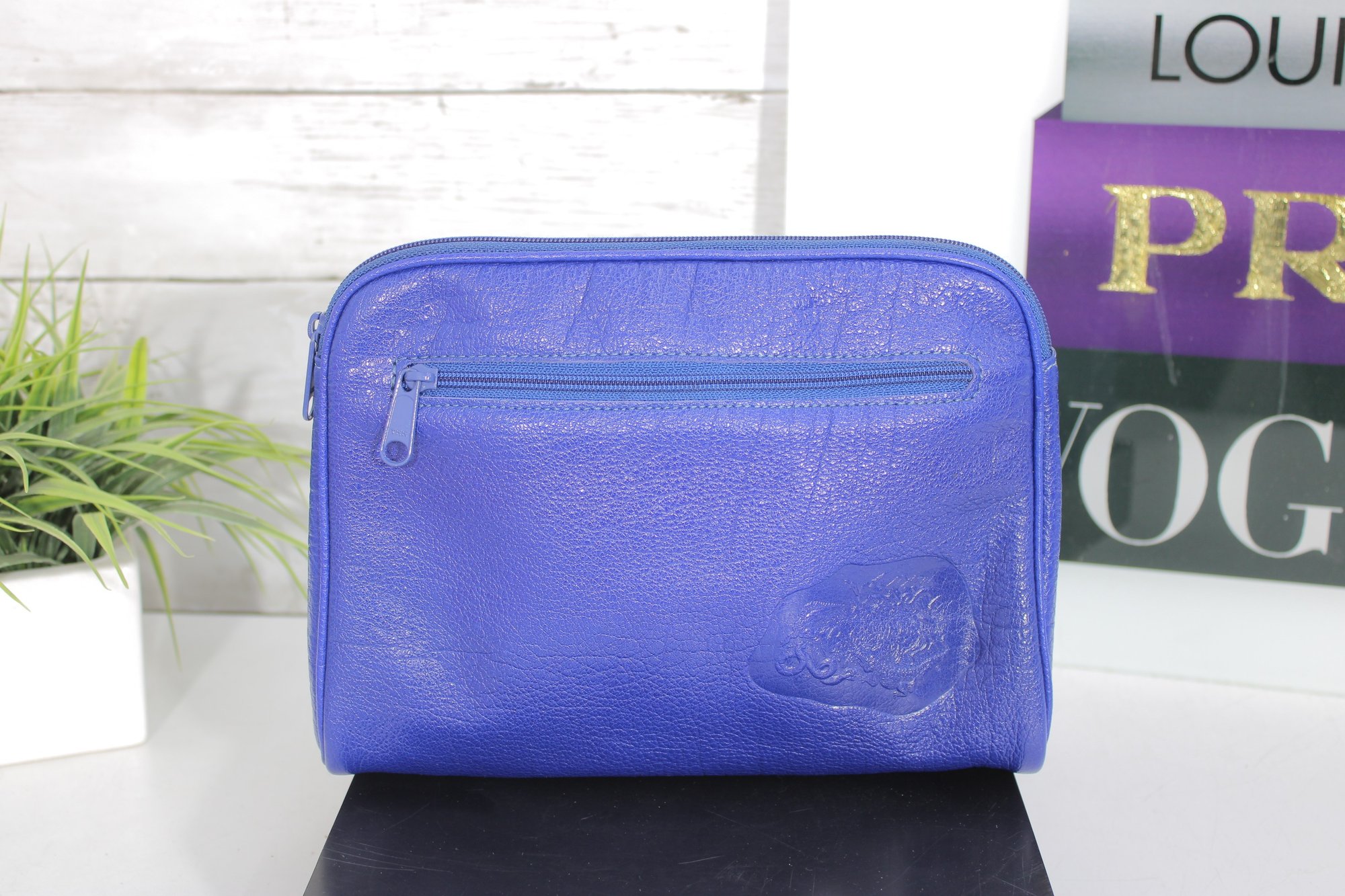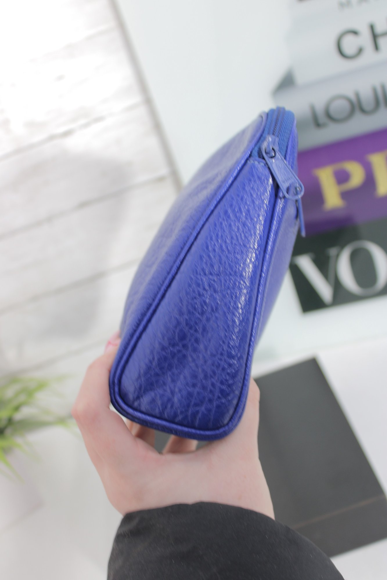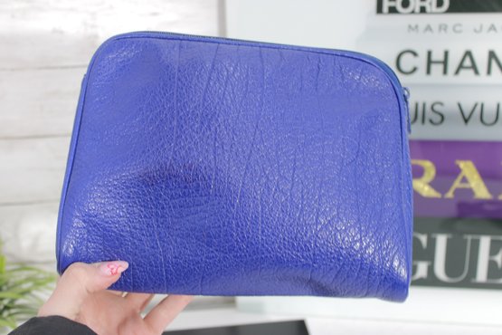 Perfect for cosmetics, travel essentials, or everyday organization, the lightweight design easily fits inside a handbag or can be carried alone as a chic clutch. The vibrant blue tone gives it a modern designer look while remaining practical and versatile.