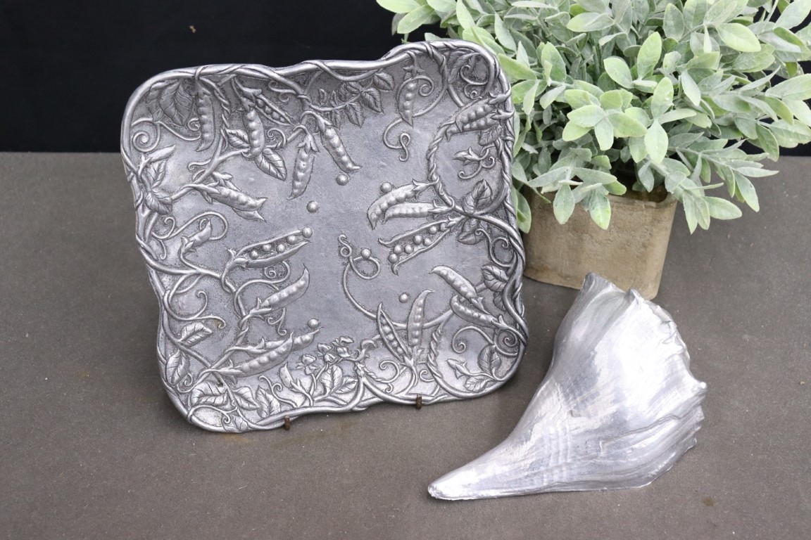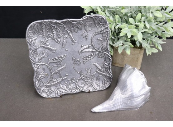 Carson Statesmetal Peapod And Shoots Tray And Cast Aluminum Whelk Shell