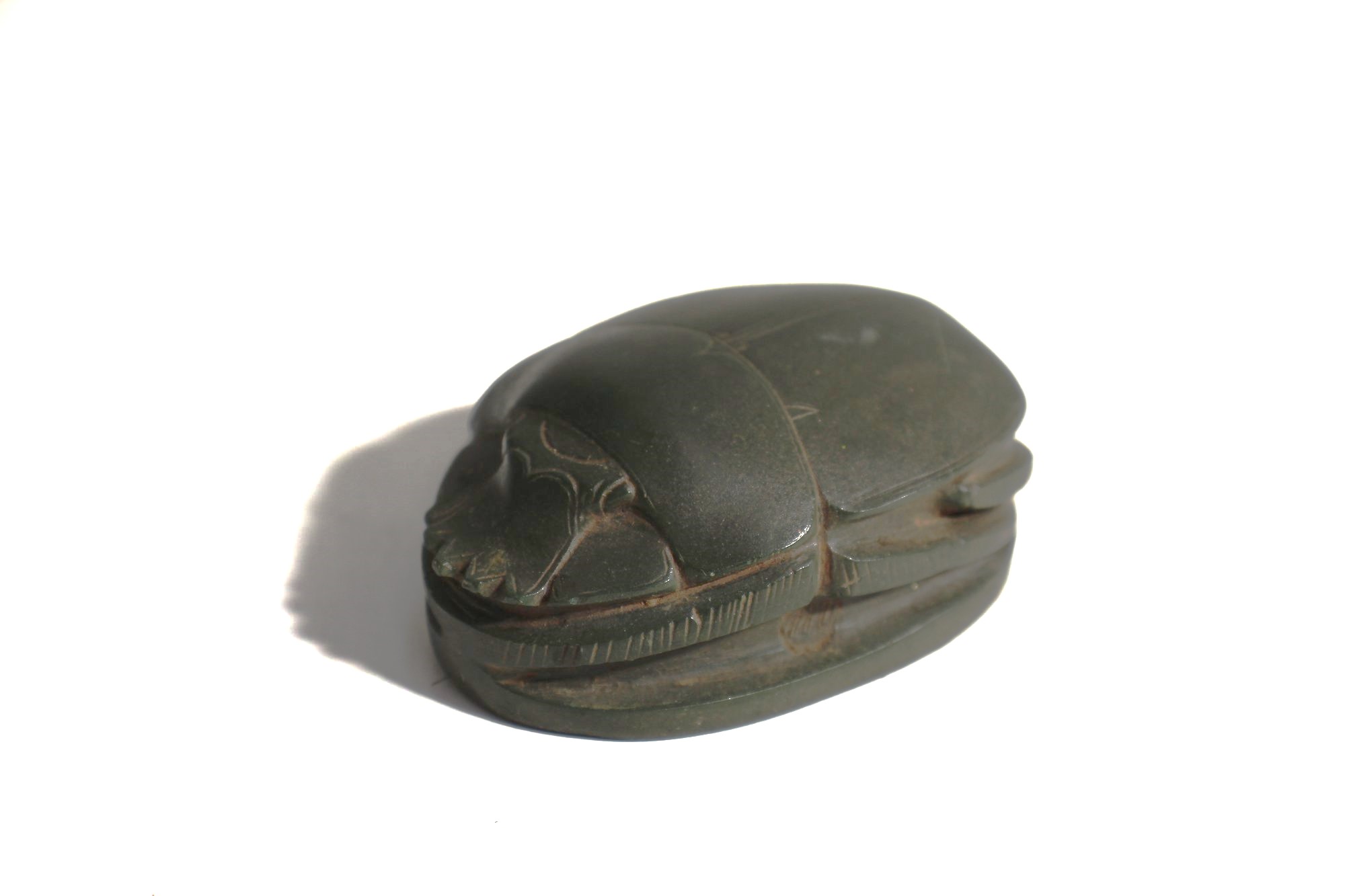 "Carved Composition Egyptian Scarab With Hieroglyphics