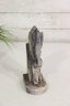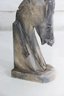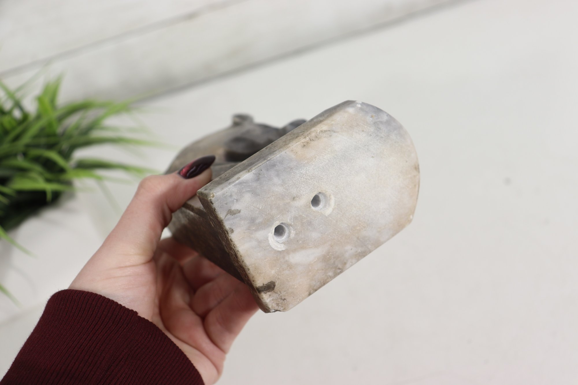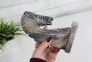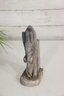 The natural stone shows varied tones of gray, beige, and charcoal, adding depth and character to the sculpture. Its compact size makes it an excellent decorative accent, while the sculptural form allows it to be appreciated from multiple angles.