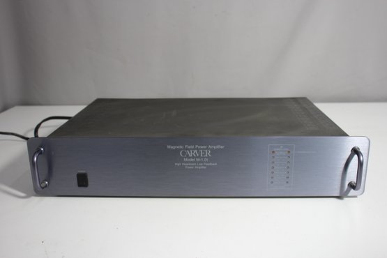 Carver M-1.0t Magnetic Field Power Amplifier, known for its high headroom and low feedback design, perfect for audiophiles and vintage audio collectors. Designed with both stereo and mono configurations, this powerful amplifier delivers quality sound performance with a sleek, rack-mountable design.