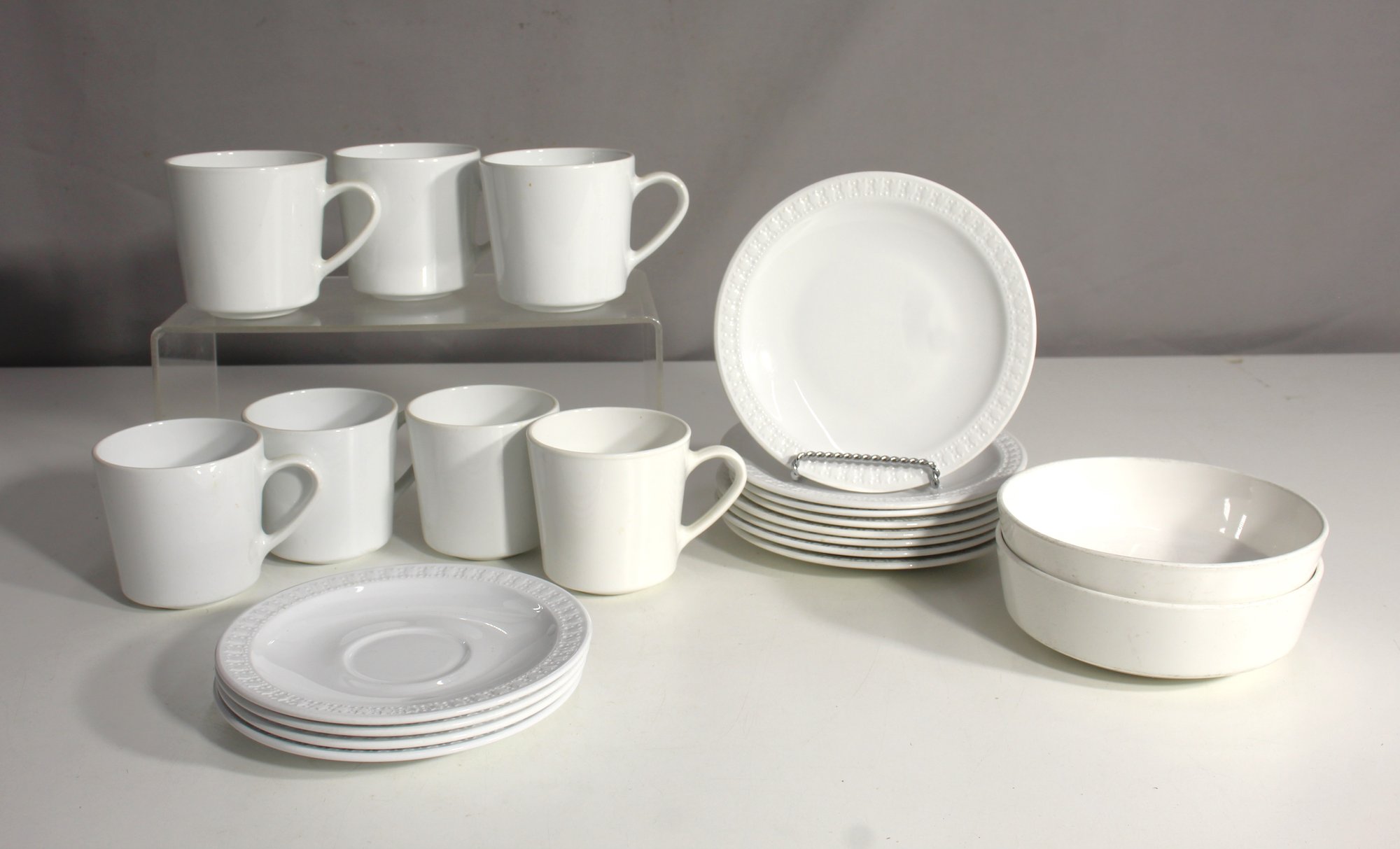 This classic white dinnerware set by Centura, a brand of Corning, features a collection of cups, plates, and bowls with a timeless design. Known for its durability and minimalist aesthetic, Centura by Corning is perfect for both everyday use and special occasions. This set includes multiple pieces, each with the signature quality and simplicity that make them easy to mix and match with other tableware. Ideal for those seeking reliable and elegant dinnerware for a modern kitchen or dining setup.