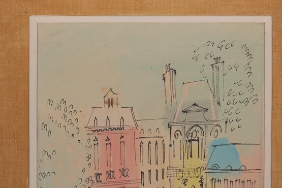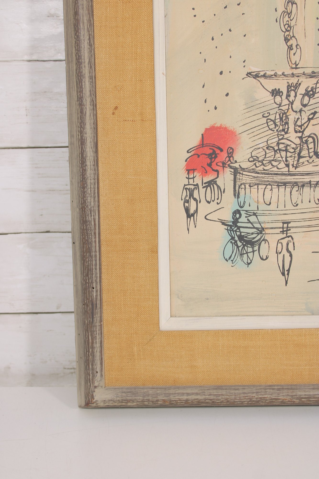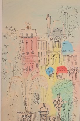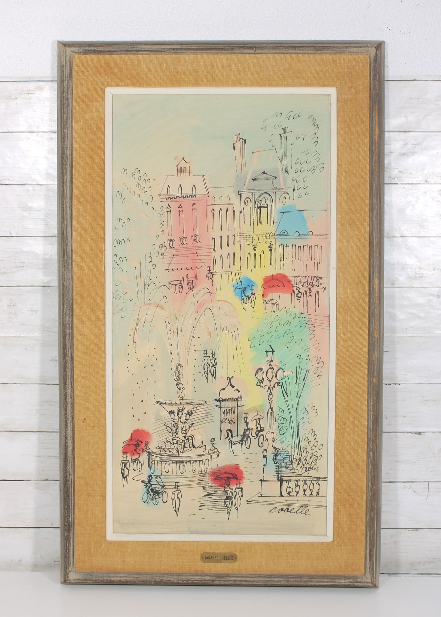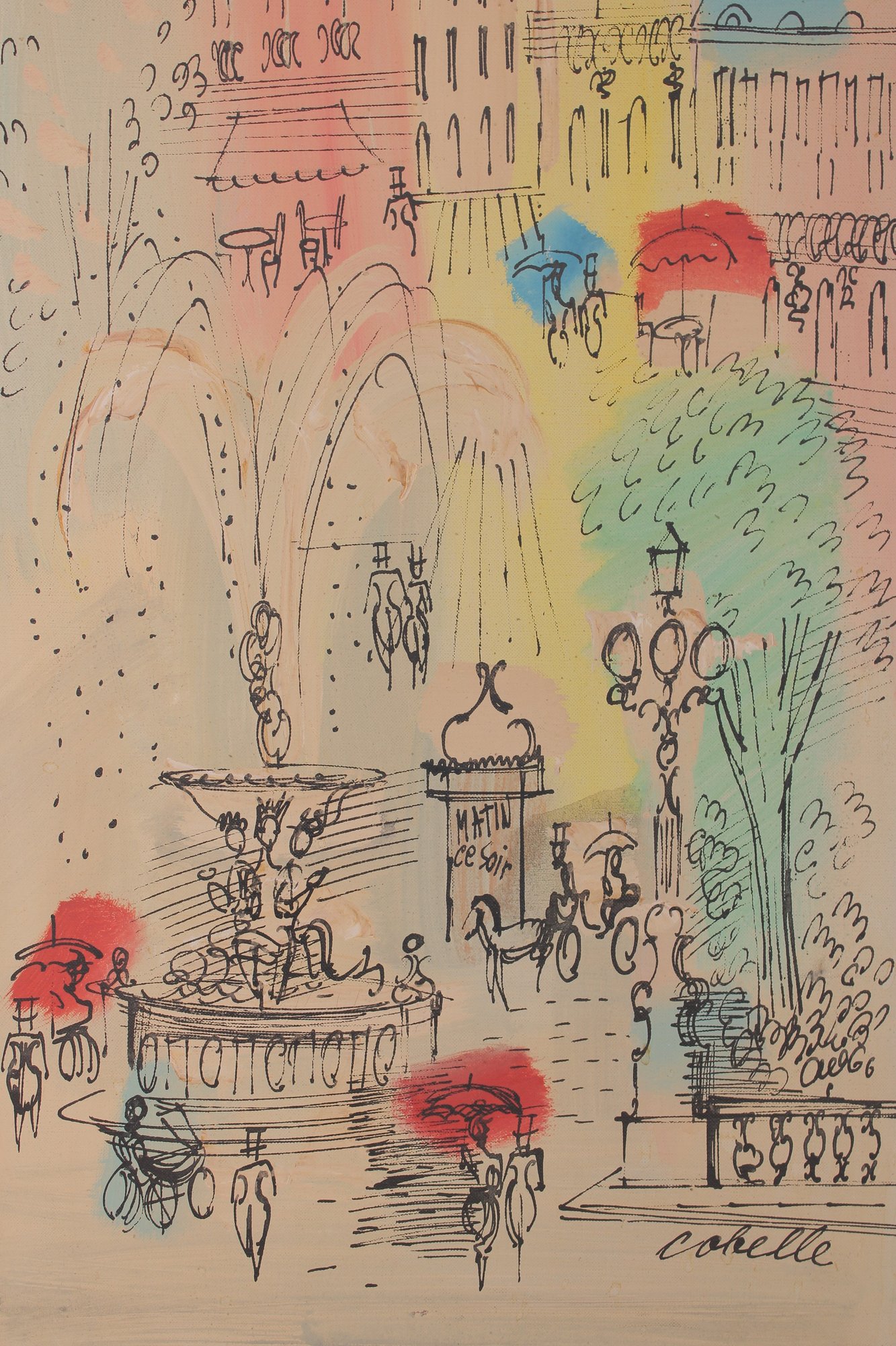 This piece captures a lively European cityscape with delicate linework and soft pastel washes, featuring architectural details, figures, and pops of color that bring the scene to life. Cobelle’s signature loose, expressive style is beautifully showcased, making this a timeless decorative artwork.