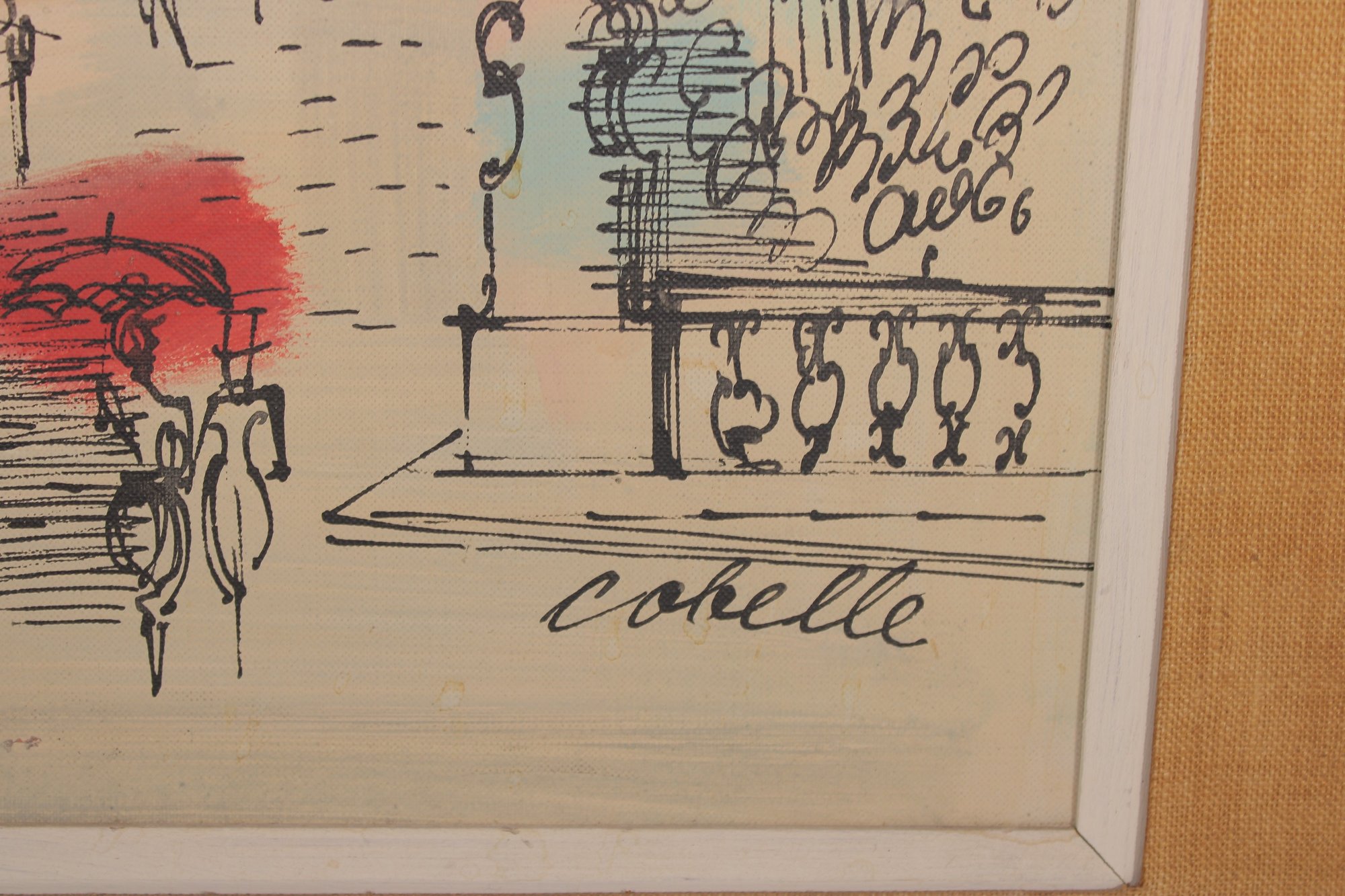 framed lithograph by listed French-born artist Charles Cobelle (1902–1995), known for his charming Parisian street scenes and distinctive mid-century modern style.