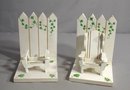ideal for the gardener or lover of whimsical home decor. These bookends, fashioned to resemble garden benches backed by picket fences adorned with painted green vines, are as practical as they are enchanting.