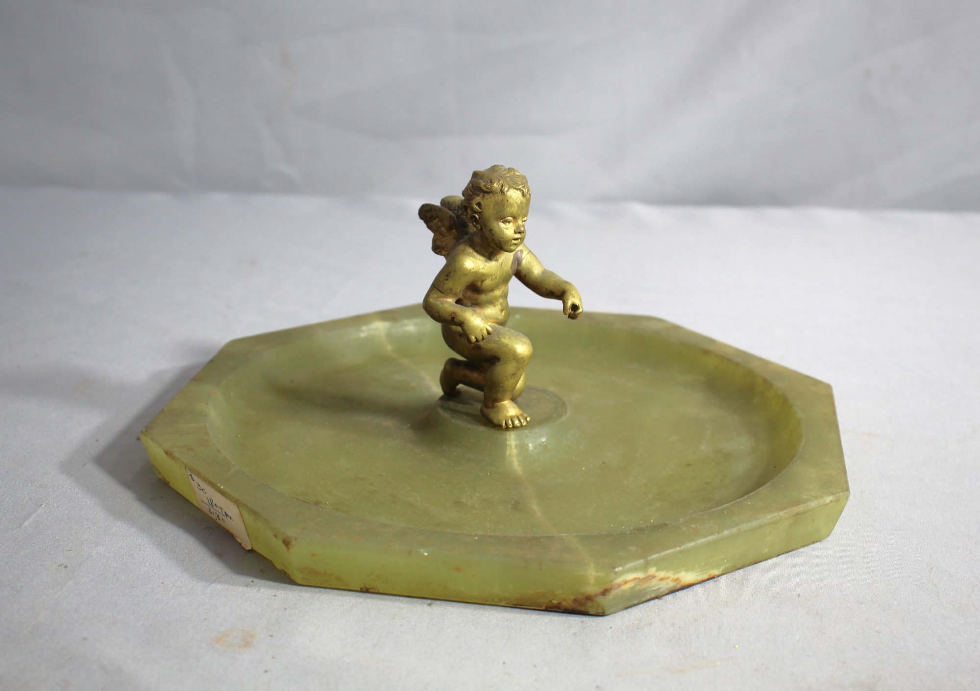 This unique piece boasts a detailed octagonal base that serves as a catchall for ash, while the charming cherub figure adds a playful yet classic touch