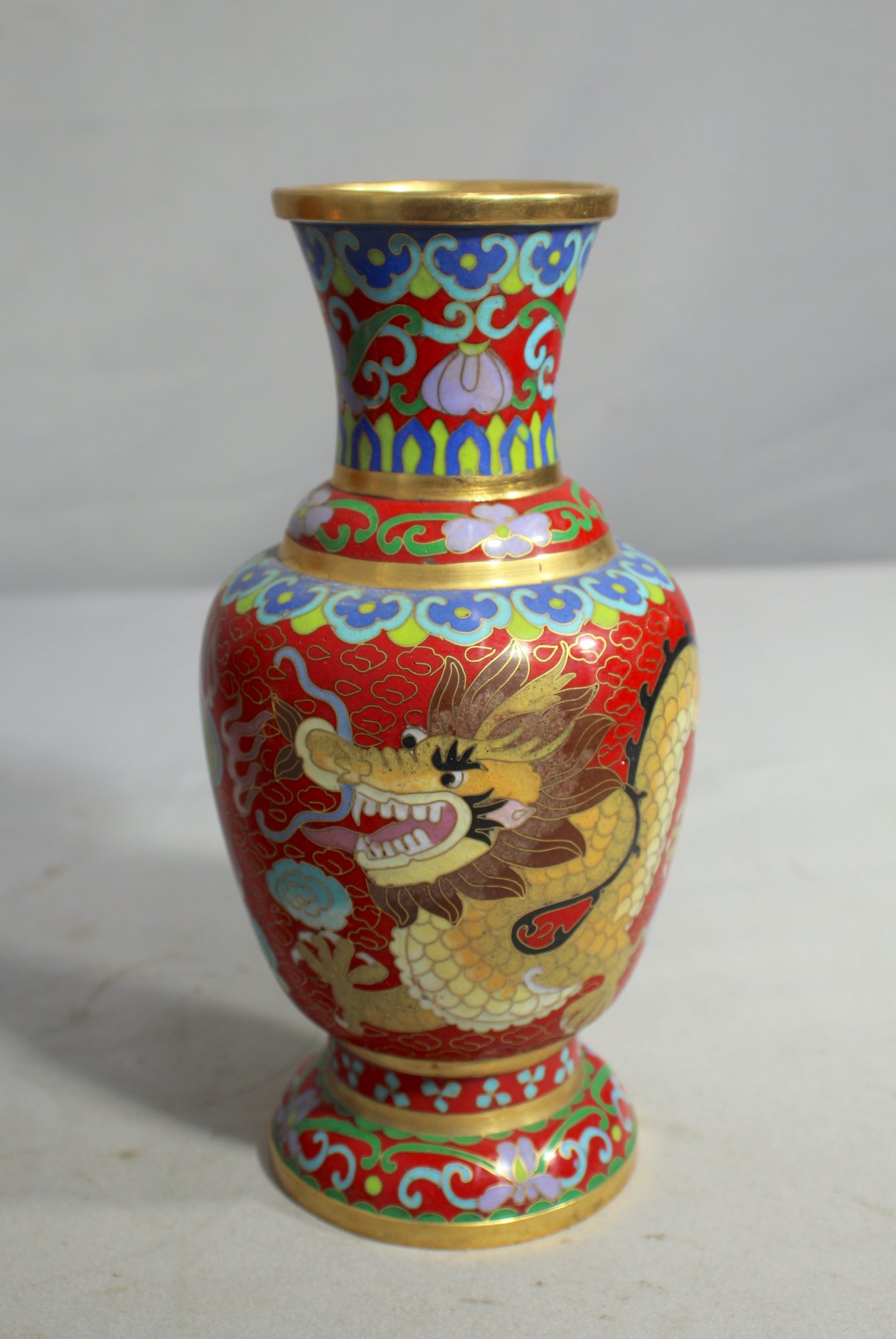 Chinese Cloisonne Dragon Phoenix Pot Vase