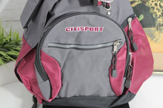 CitiSport Sling Backpack / Crossbody Pack Gray & Burgundy Multi-Pocket NEW / Never Used