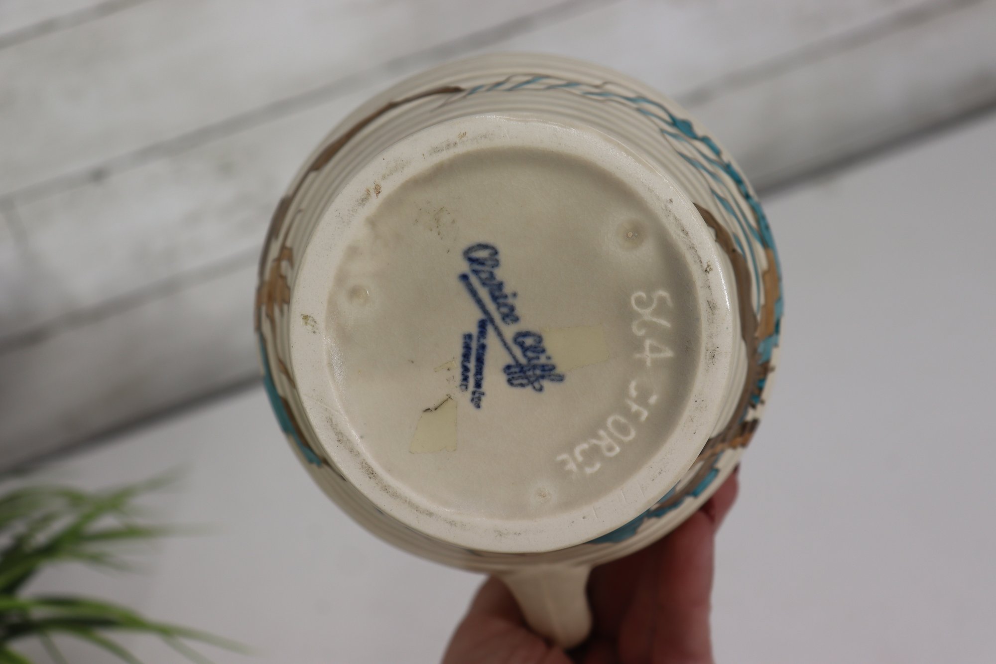 This jug is a wonderful example of Cliff’s iconic design work and is perfect for collectors of Clarice Cliff, Art Deco ceramics, or British pottery. Some age wear is present, particularly around the base, consistent with vintage pottery.